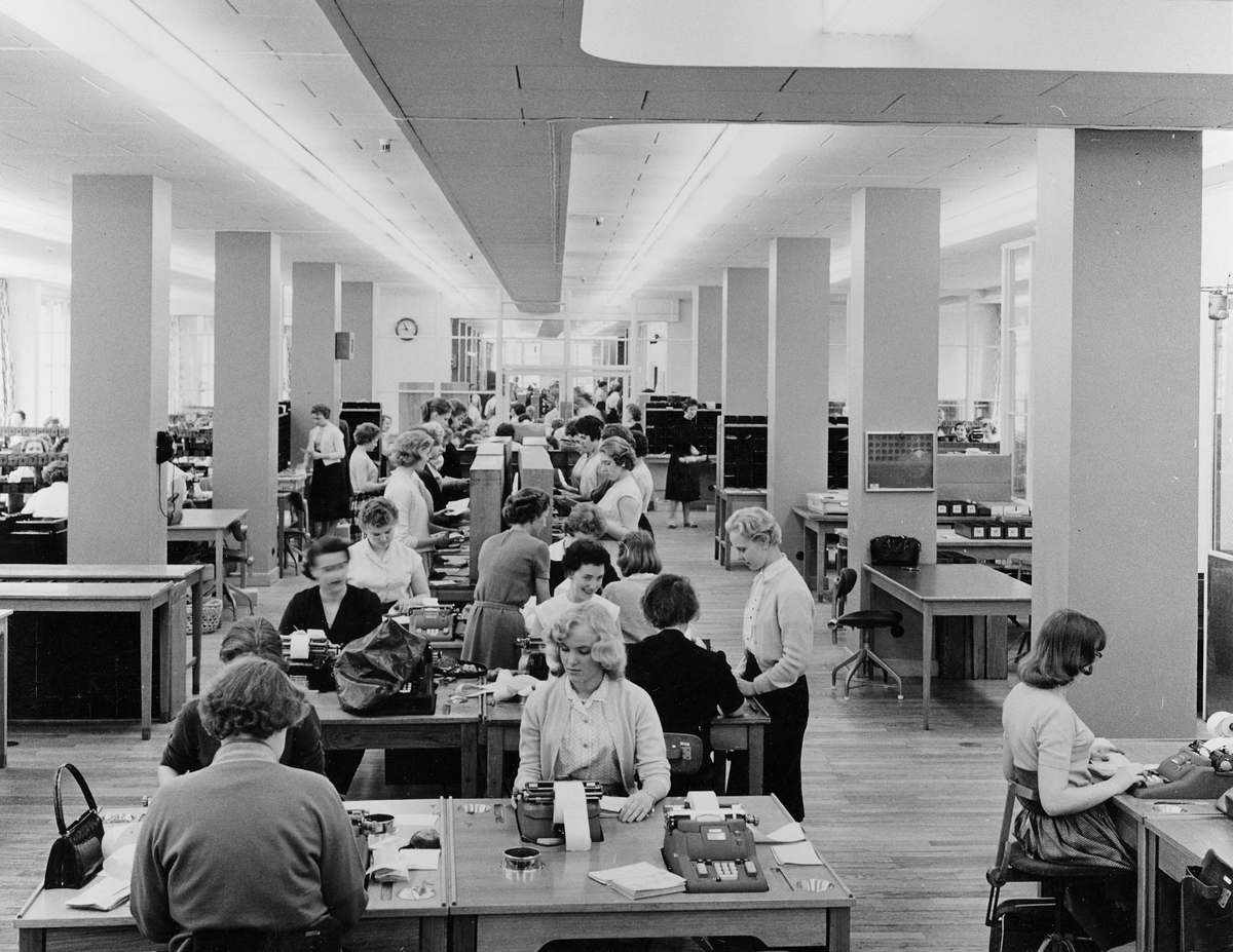 Sortering av utbetalnings- och gireringskort. T.v. fönster åt Klara