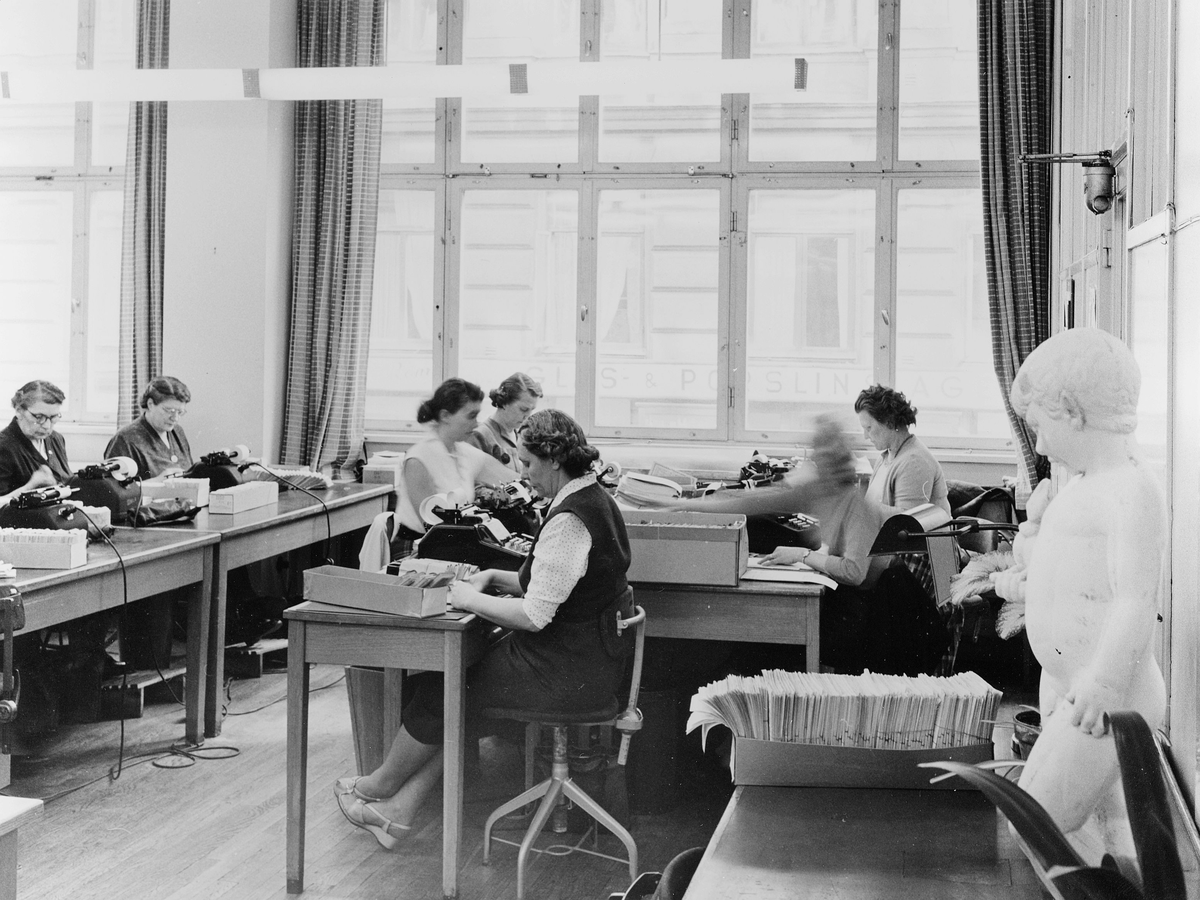 Postgirokontorets Undersökningsavdelning på nedre botten. Felletningen. Fönster åt Mäster Samuelsgatan.