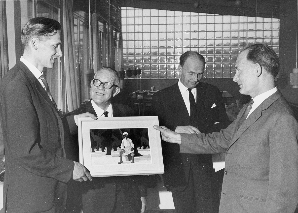 SPIK, som Olle Stavre lämnar en tavla till. I bakgrunden antecknar