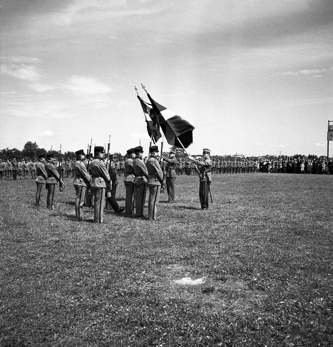 Kamratmötet, I 11. Samling på övningsfältet. Hederskompani med fanor.