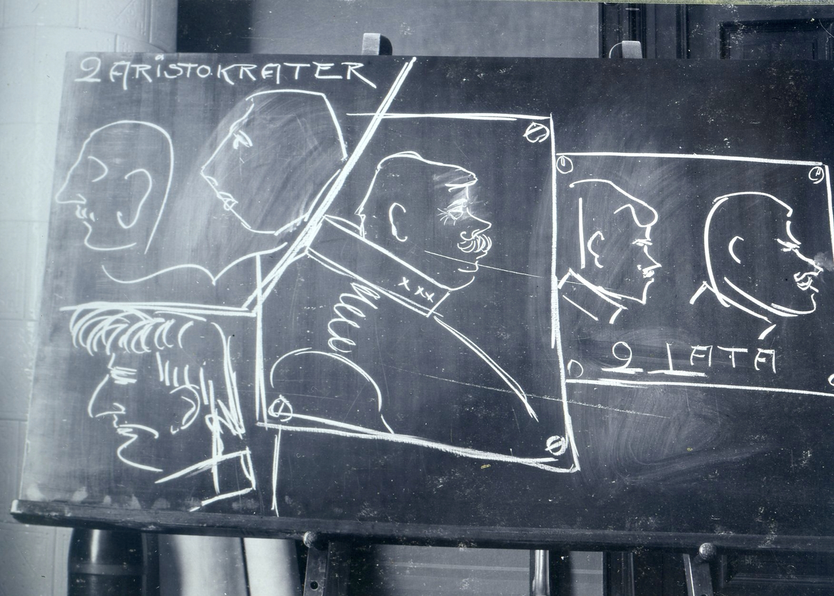 Svea ingenjörkår, Ing 1. Krigshögskolan år 1908. Karikatyrer: "2 aristokrater, 2 lata".