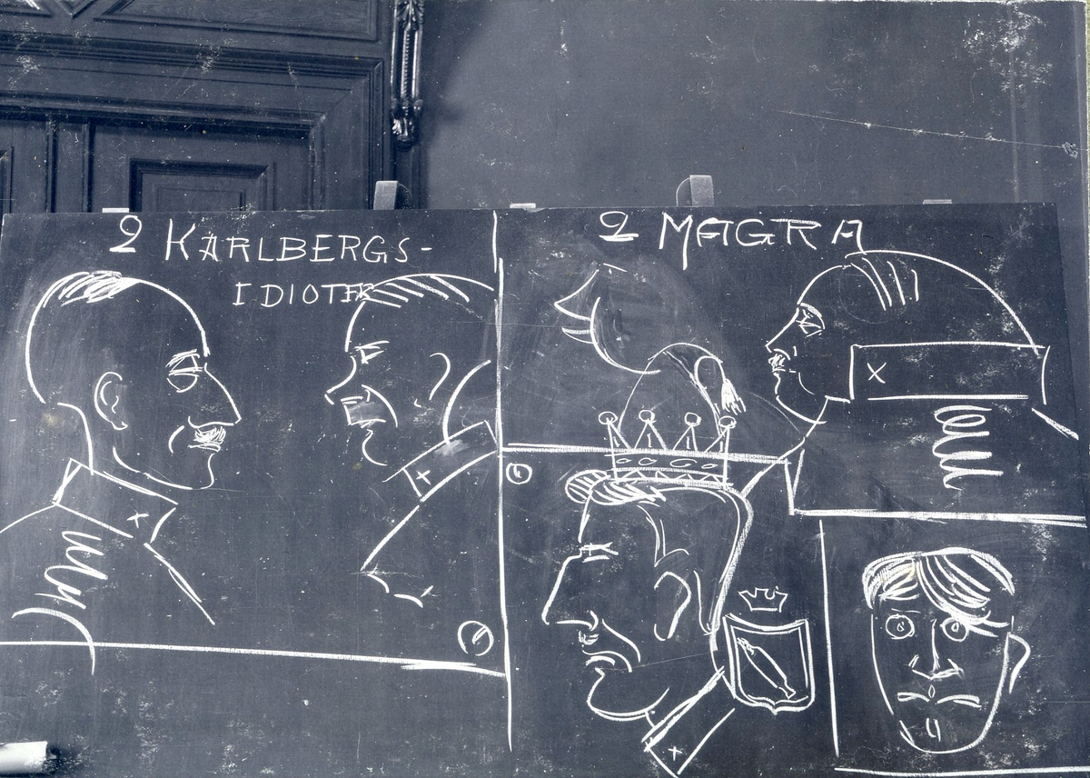 Svea ingenjörkår, Ing 1. Krigshögskolan år 1908. Karikatyrer: "2 Karlbergsidioter, 2 magra".