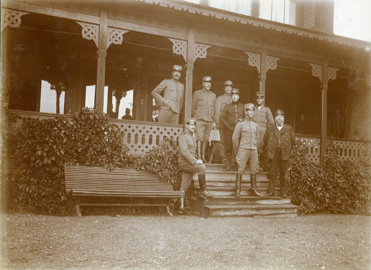 Svea ingenjörkår, Ing 1. Laxön år 1908. Oidentifierade subalterner på trappan till Officersmässen.