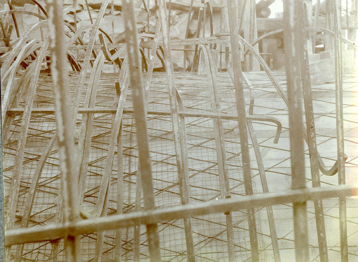 Svea ingenjörkår, Ing 1. "Befästningsarbeten i Karlskrona 1910". Byggnation av värn. Armeringsjärn.
