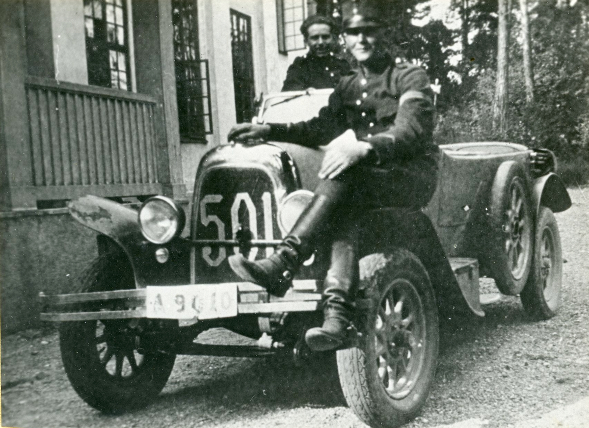 Svea ingenjörkår, Ing 1. Fiat 501. Foto från 1928. Den stolte ägaren Davidsson med passageraren G Åkesson.