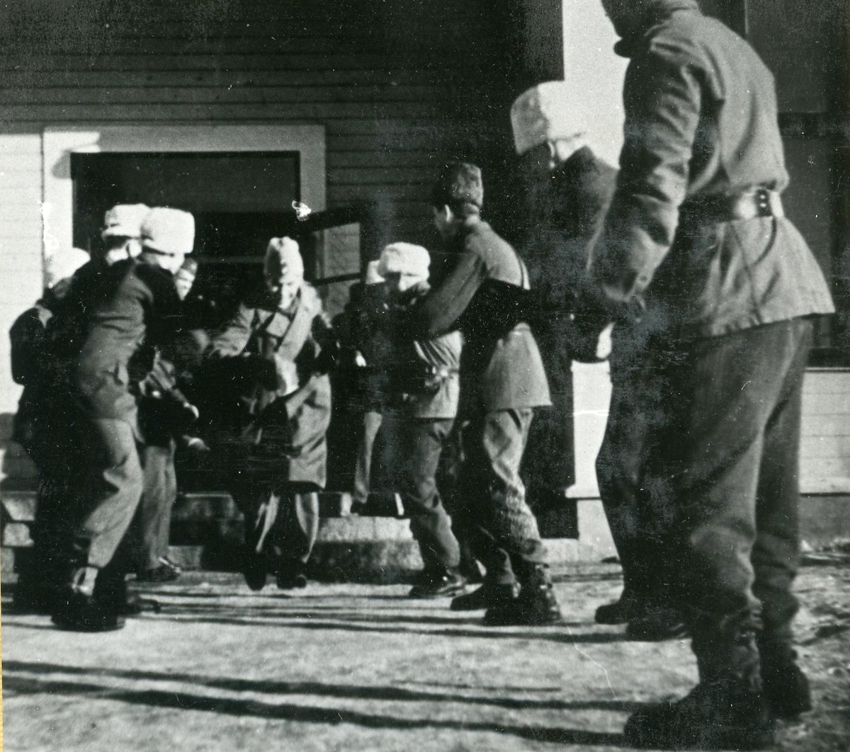 Svea ingenjörkår, Ing 1. Avslutningsceremonier vid Arméns underofficersskolas (AUS) studentexamen 1942. "Realare" tages emot av "Latinare" med en spark där bak.