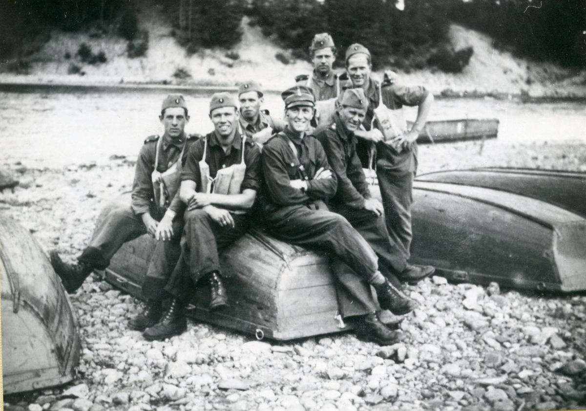 Svea ingenjörkår, Ing 1. Sand vid Laxön år 1938. Fr v: Johansson, S Berg, Remnert, löjtnant Uggla, K Borgström, K E Kågesten, T Malmqvist.