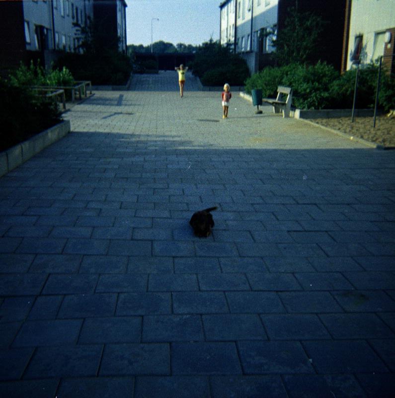 Hund på en av gårdarna på Rökullagatan.