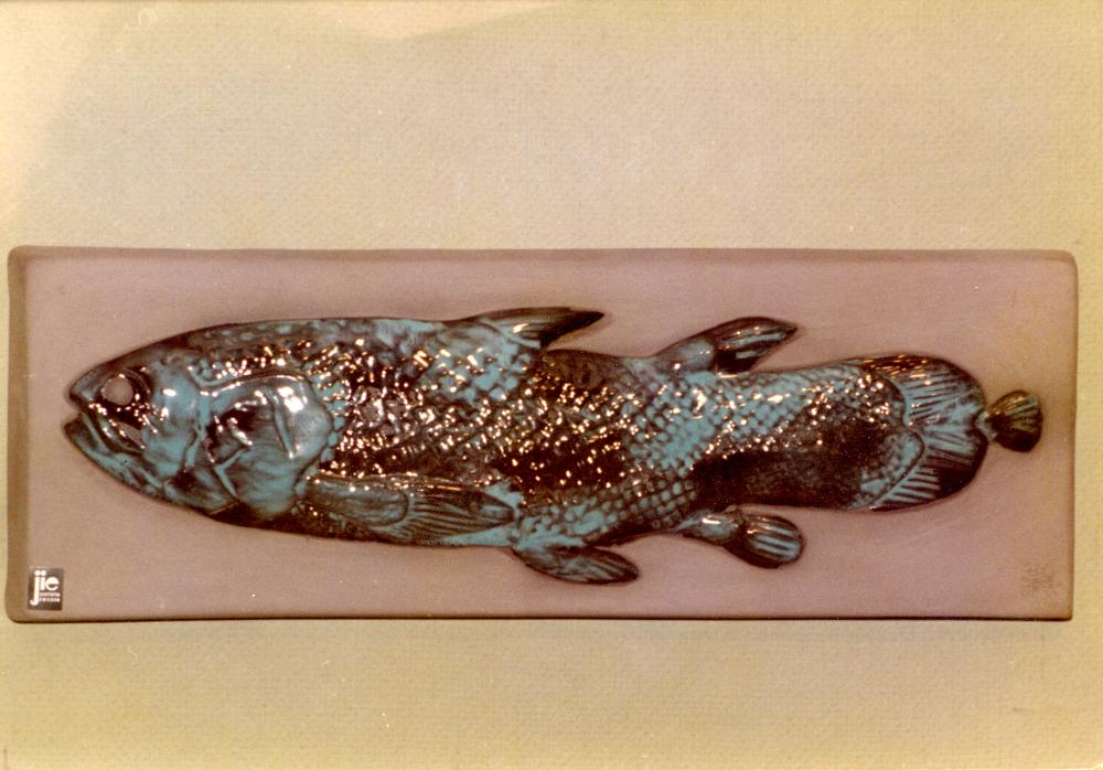 Fotografi föreställande en keramiktavla med en fisk på. Stämplat Kodak 72