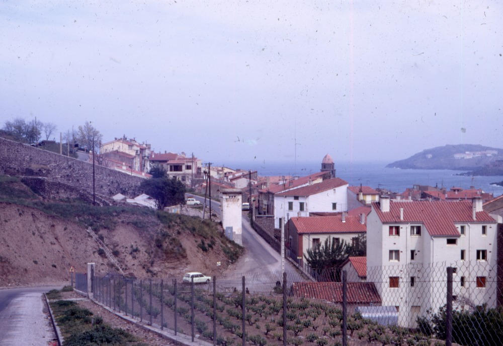 Bilder från Eva Holmberg Jacobssons liv och resor. I förgrunden gata och plantering. I bakgrunden stadsbebyggelse, flervåningshus, och hav.