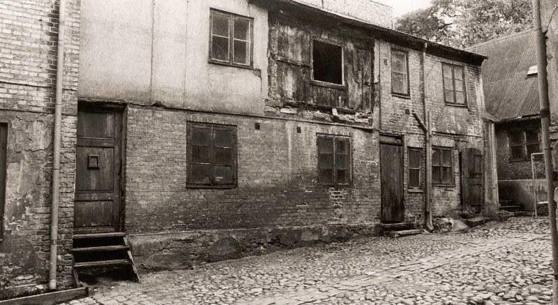 På bilden syns en fastighet som till synes använts för någon form av näringsverksamhet. Fastigheten är illa medfaren.