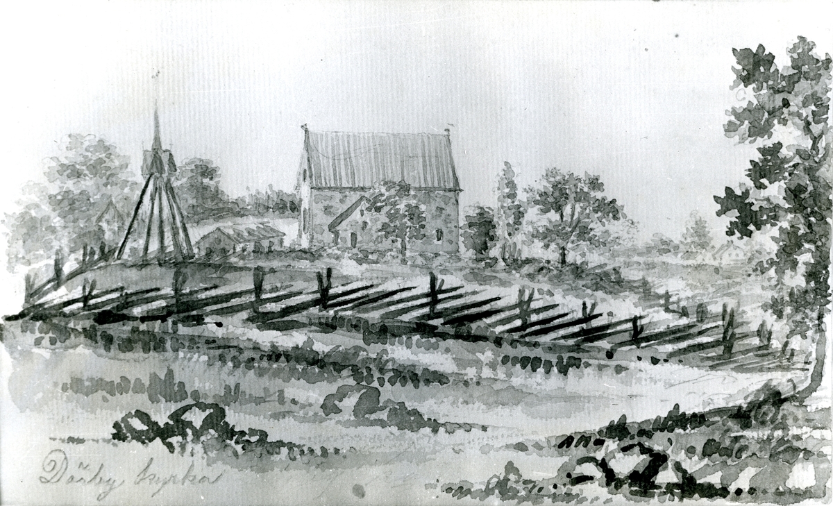 Dörby kyrka. Ur Eleonora Jul. Wiggmans skissbok, Kalmar museum.