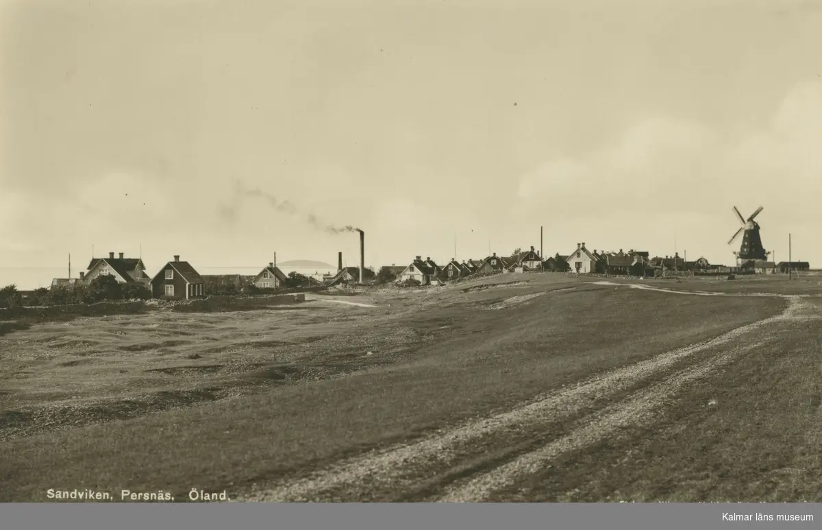 Vykort med motiv över byn Sandvik.
