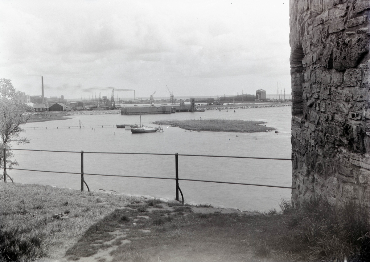 Vy över Kalmar hamn från slottet.