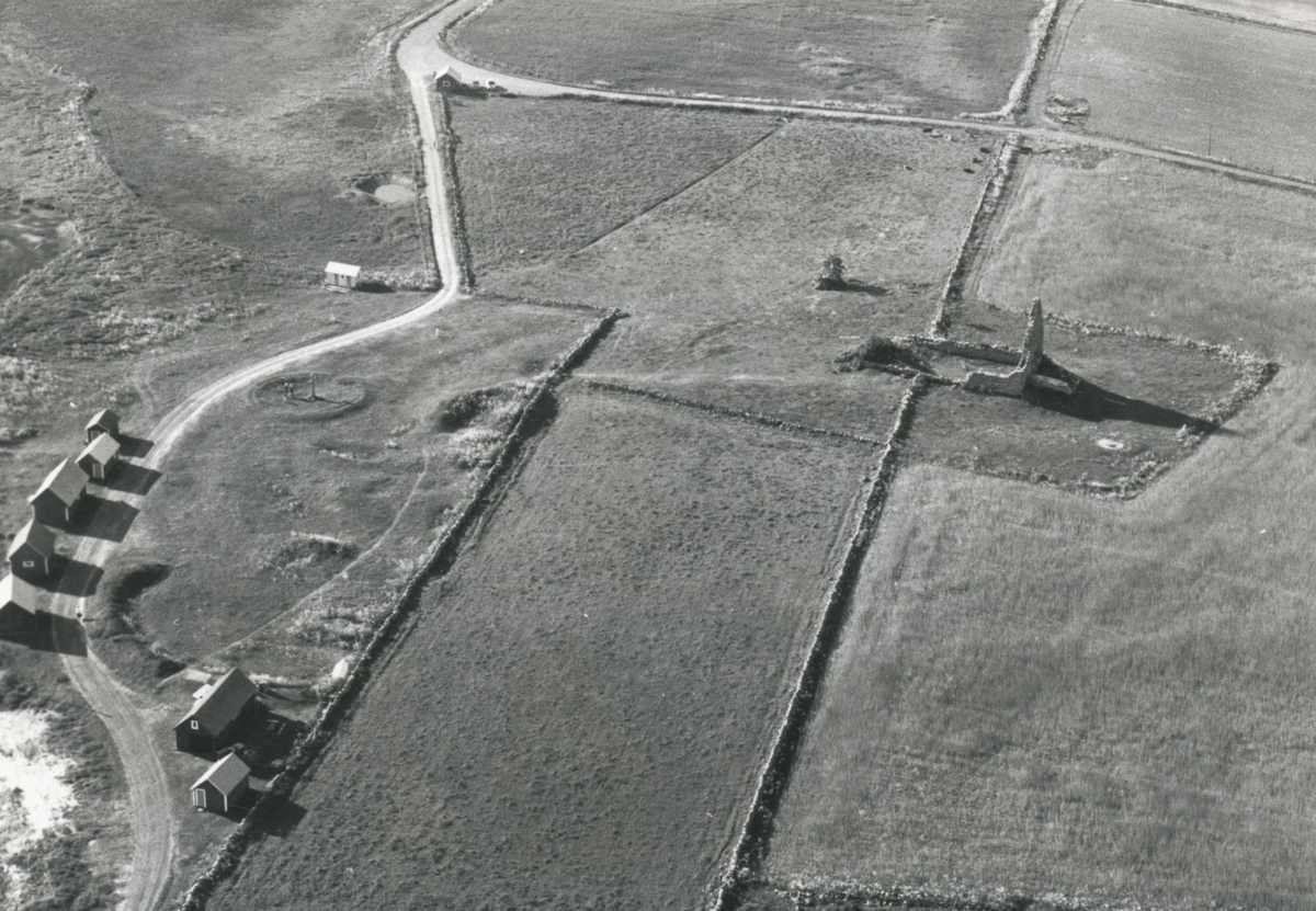 Kapelludden med fiskebodar, och Sankta Birgittas kapell, (även kallat Sankta Britas kapell eller Långöre kapell), åt höger i bild.