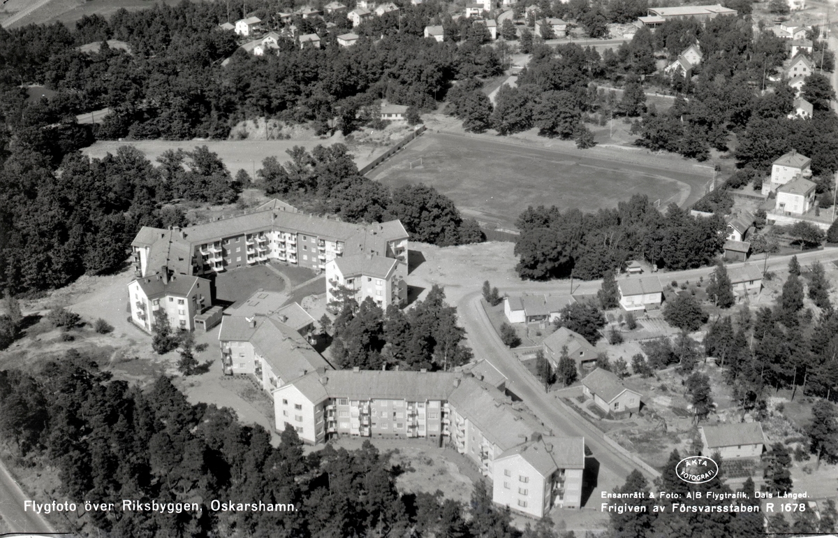 Titel: Vy över bostadsområdet Stjärnhus ( Riksbyggen ) i Oskarshamn.