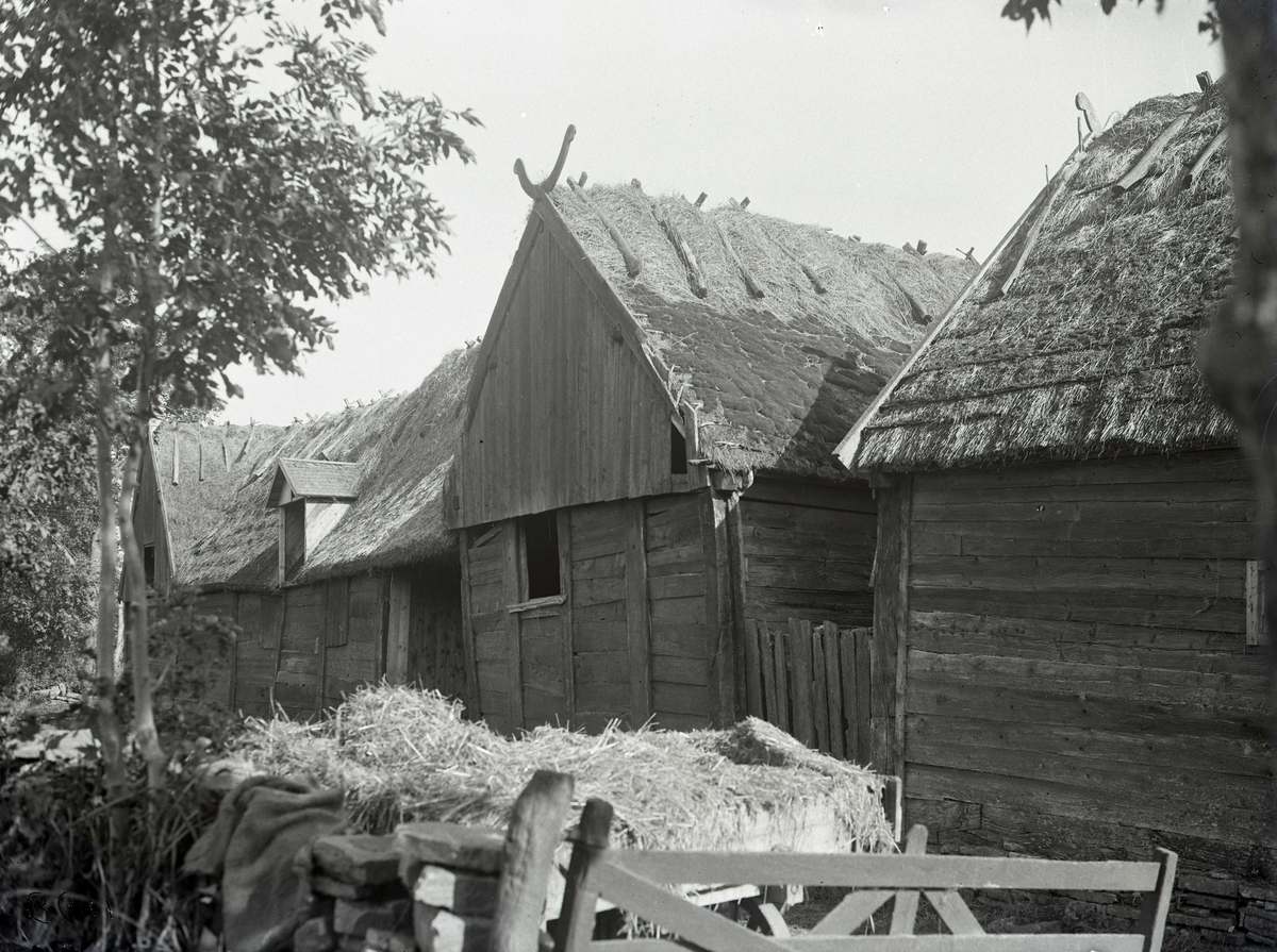 Ladugårdar med trähorn på vindskivan.