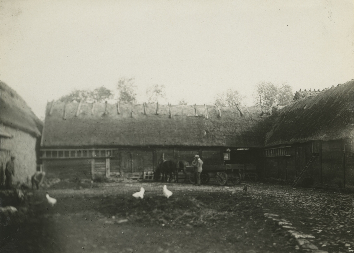 Gårdsinteriör med ladugårdar.