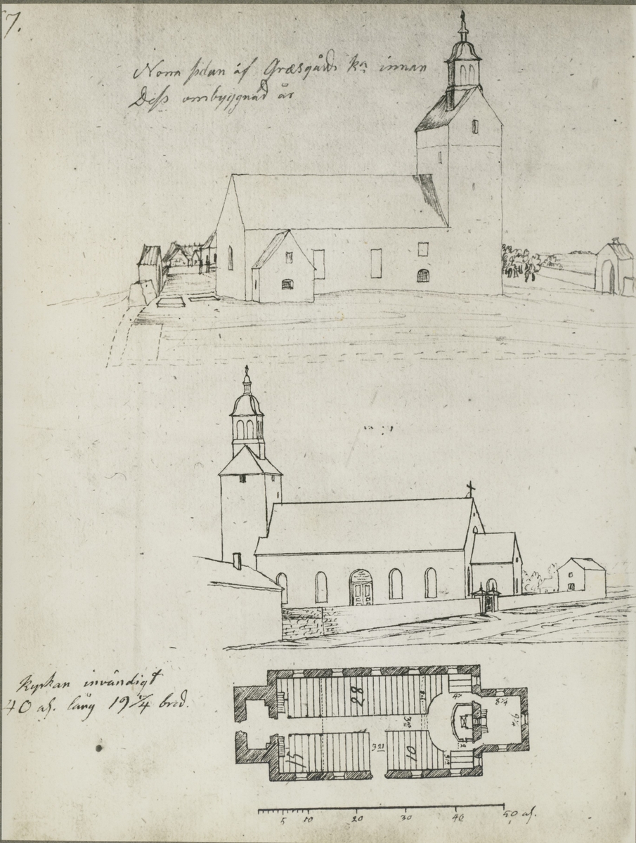 Teckning av Gräsgårds kyrka.