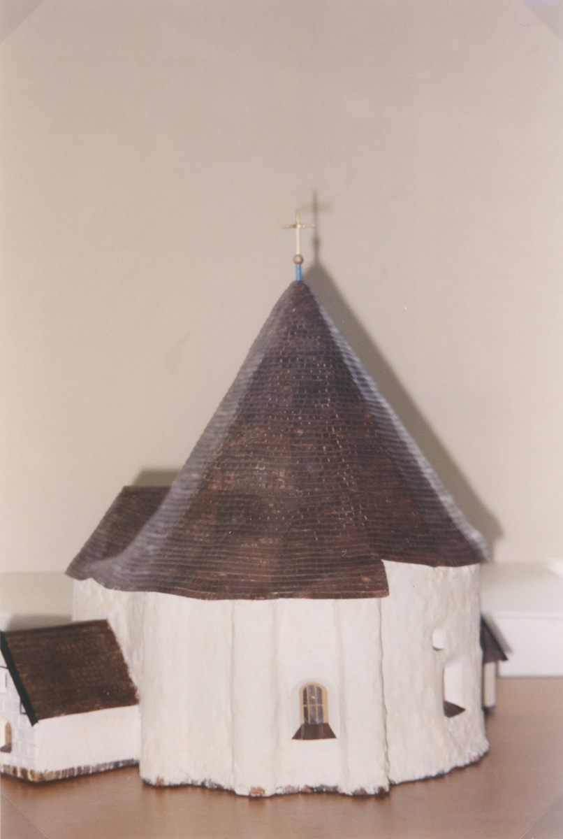 Modell av Hagby kyrka hos Flygts, Lindås.