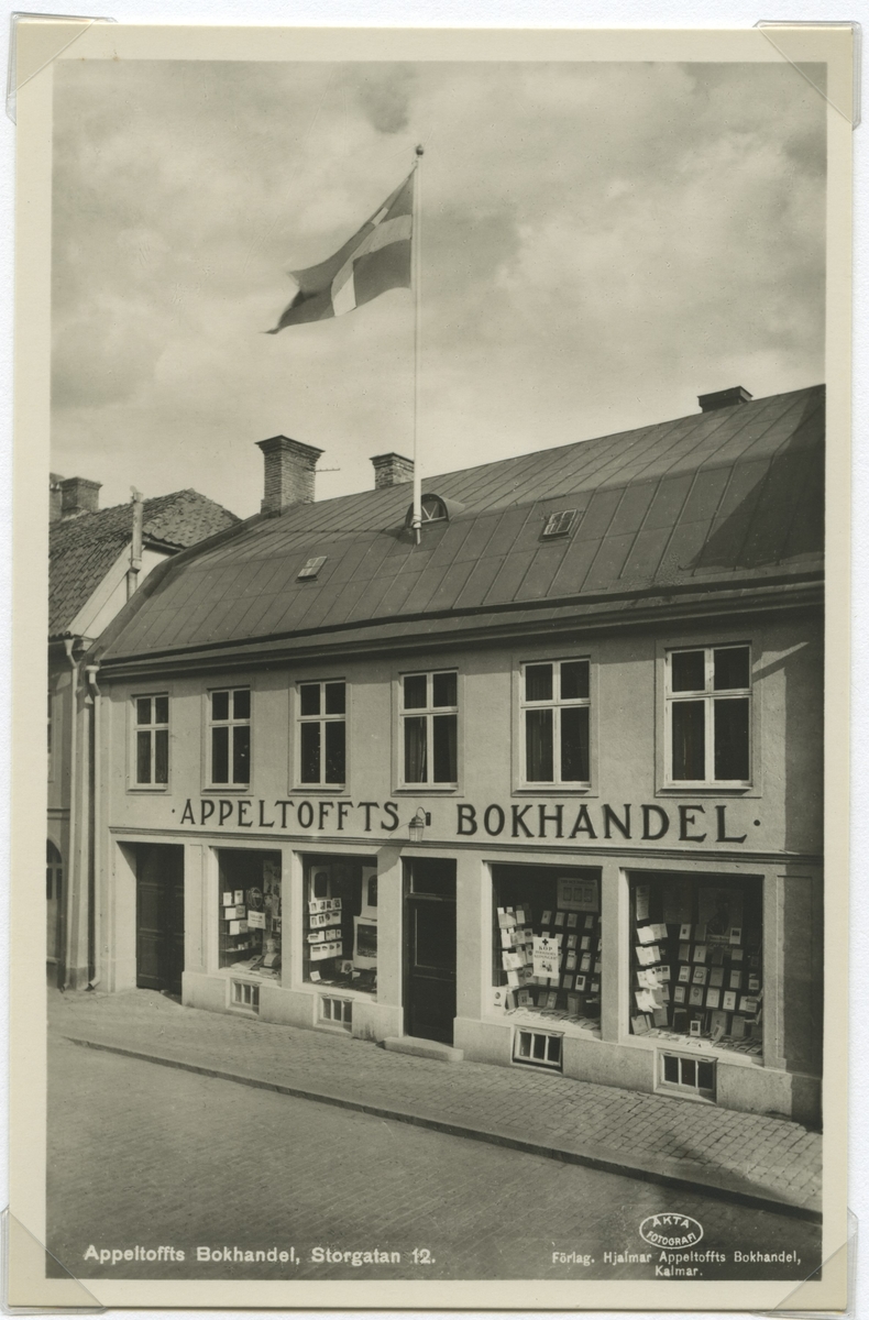 Fasad till Appeltoffts Bokhandel, Storgatan 12.