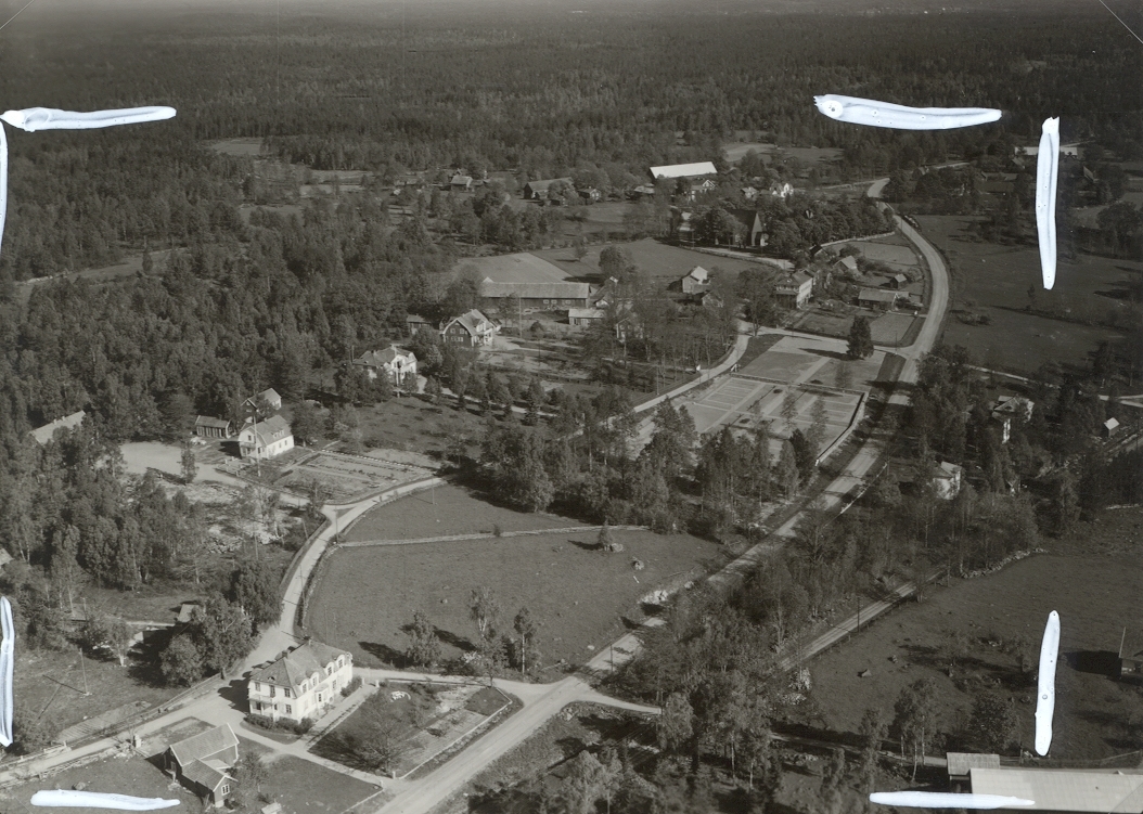 Flygfoto över Kråksmåla med bland annat ålderdomshemmet.