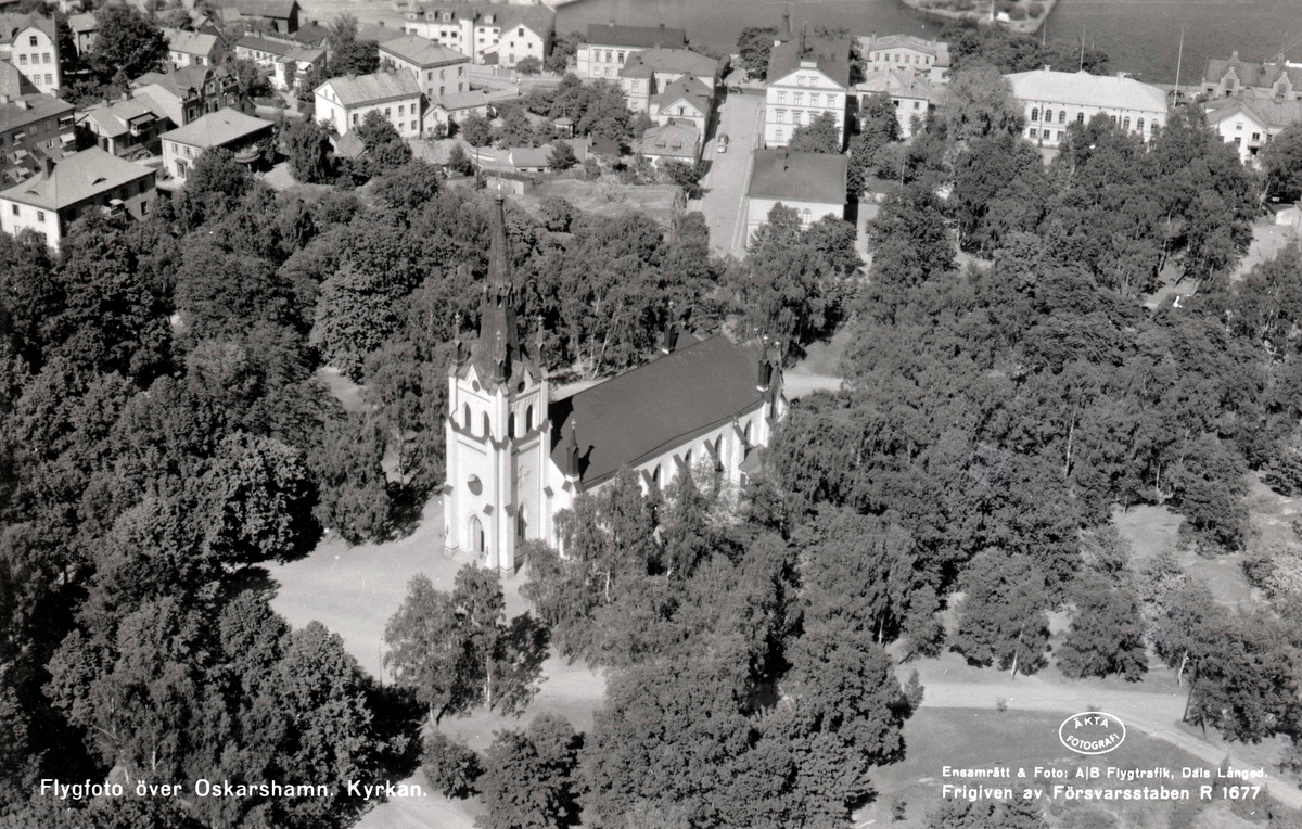 Vy över kyrkan i Oskarshamn .