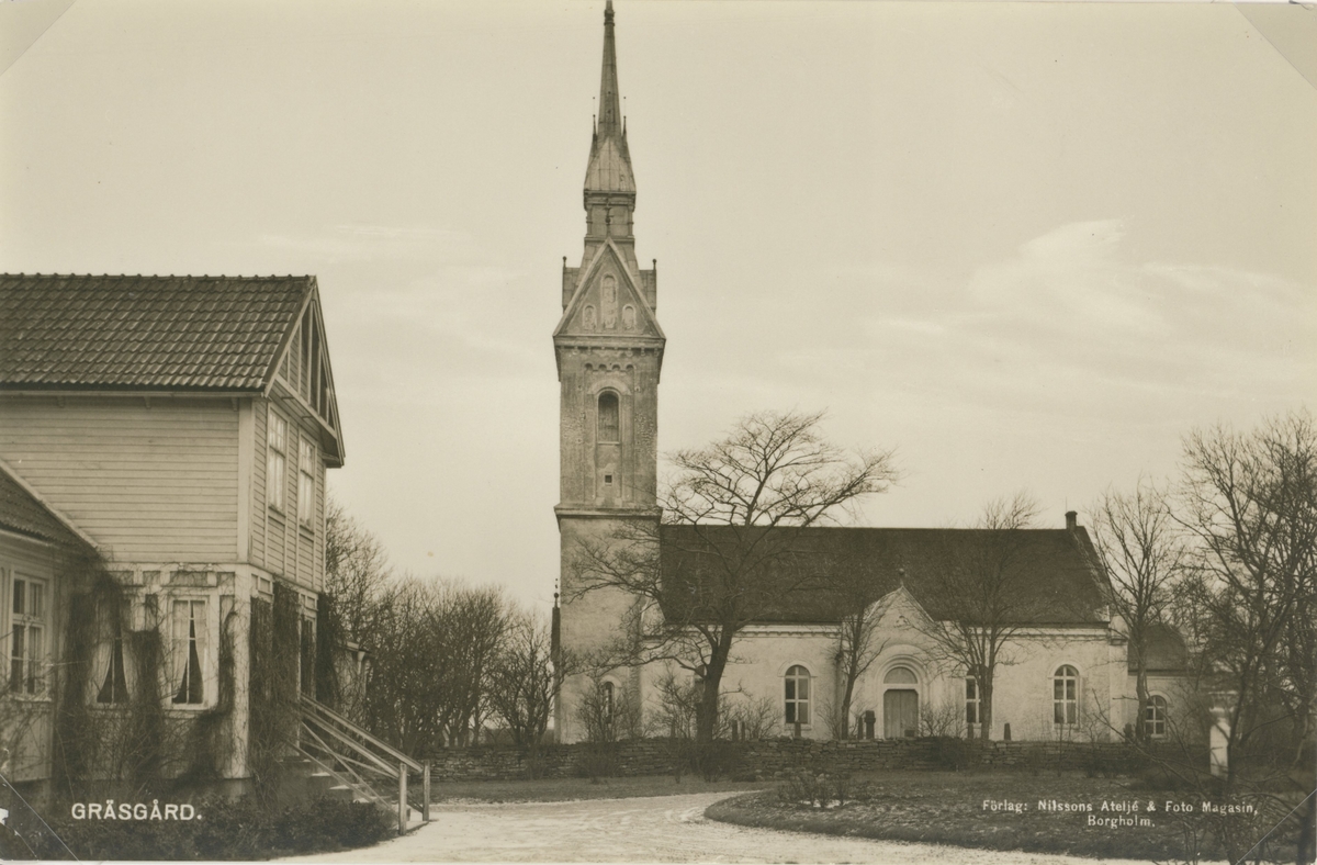 Titel: Vykort med motiv av Gräsgårds kyrka.