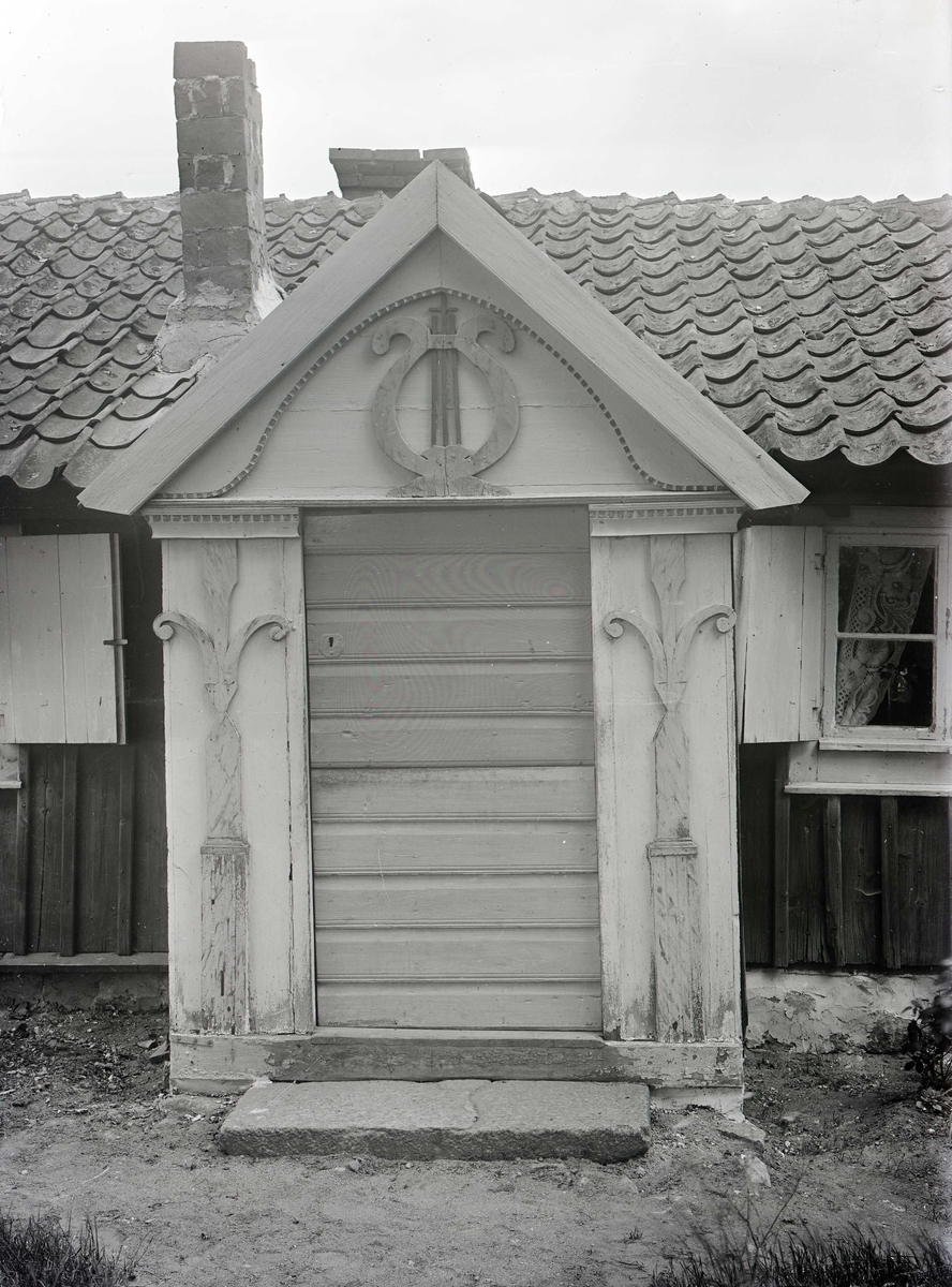 Titel: Smyckad farstukvist på ryggåsstuga i Söderåkra.