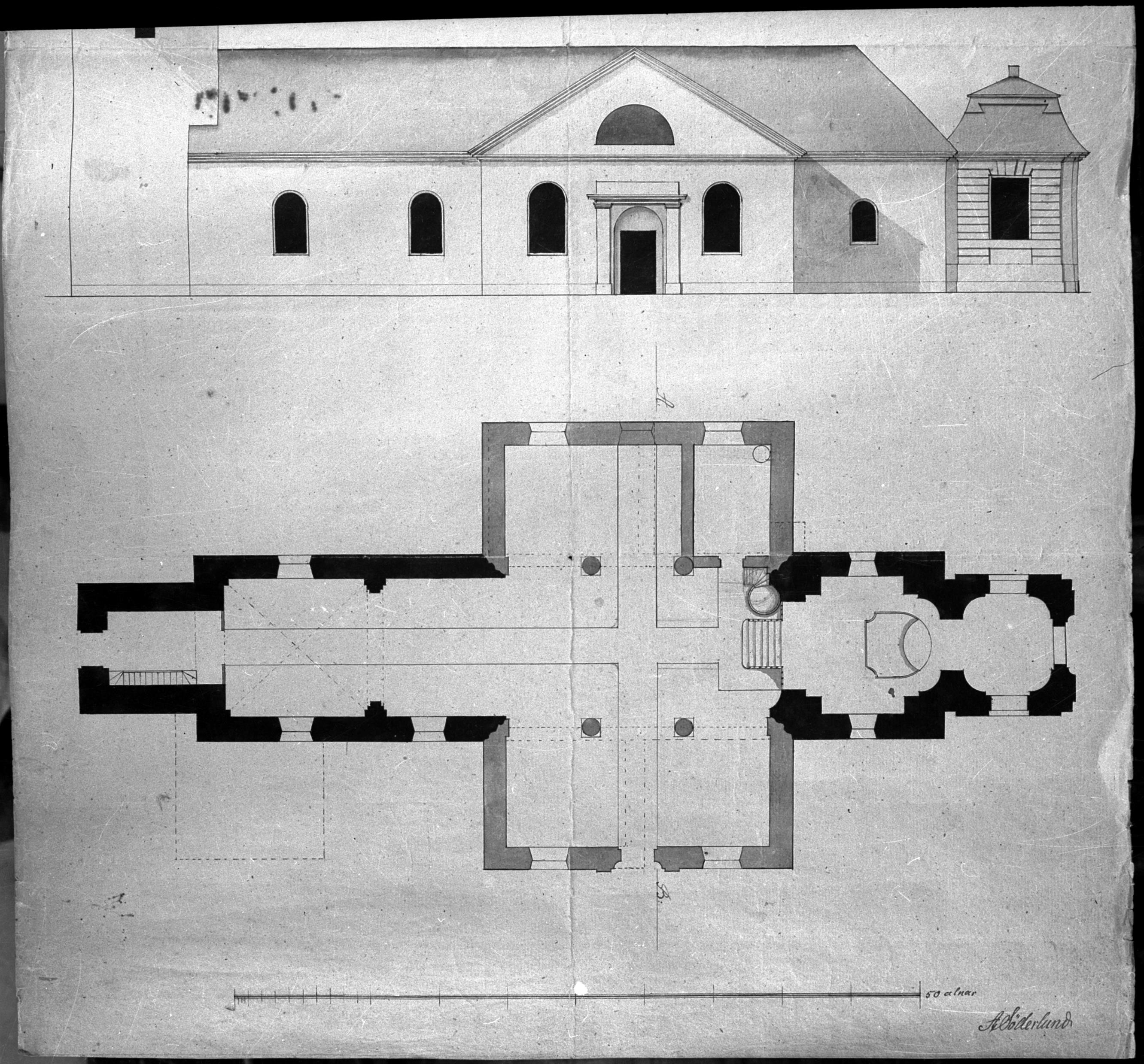 Förslag ny kyrka, foto av ritning.