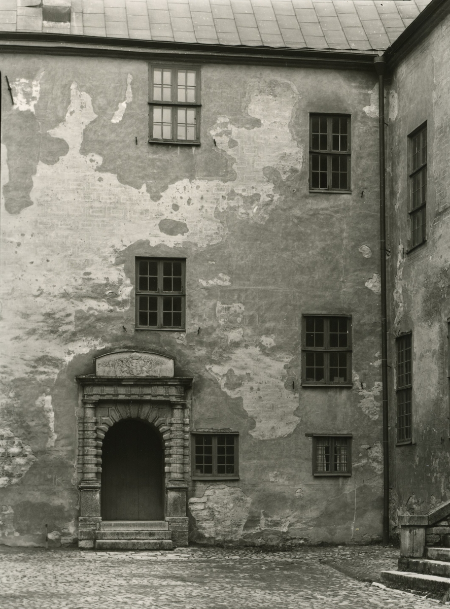Fönster, fritrappa och portal på inre borggården på Kalmar slott.
