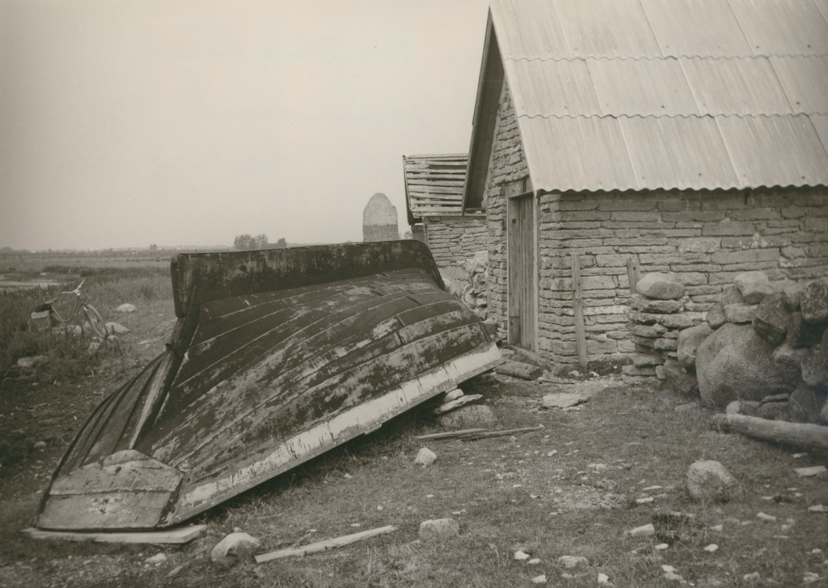 Sjöbodar, vilkas hela vänstra sida består av kalkstensflisor inramade i trä.