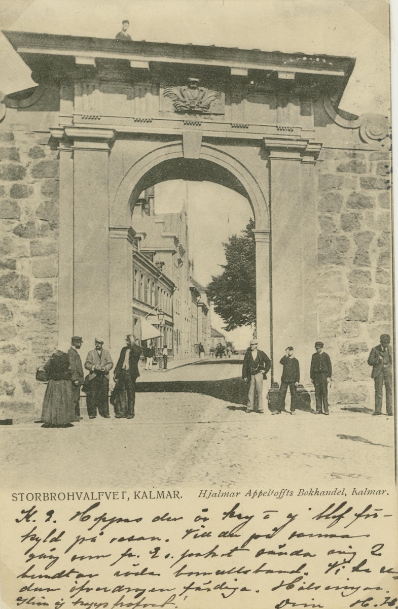 Kavaljeren, Skeppsbrovalvet. Under bilden står det: K I. Hoppas du är kry å ej allt förkyld på resan. Vill du på samma gång med stor godhet sända mig 2 lundtar röda bomulls band. Vi ska dem i ? färdiga. Hälsningar glöm ej ? din H. M.