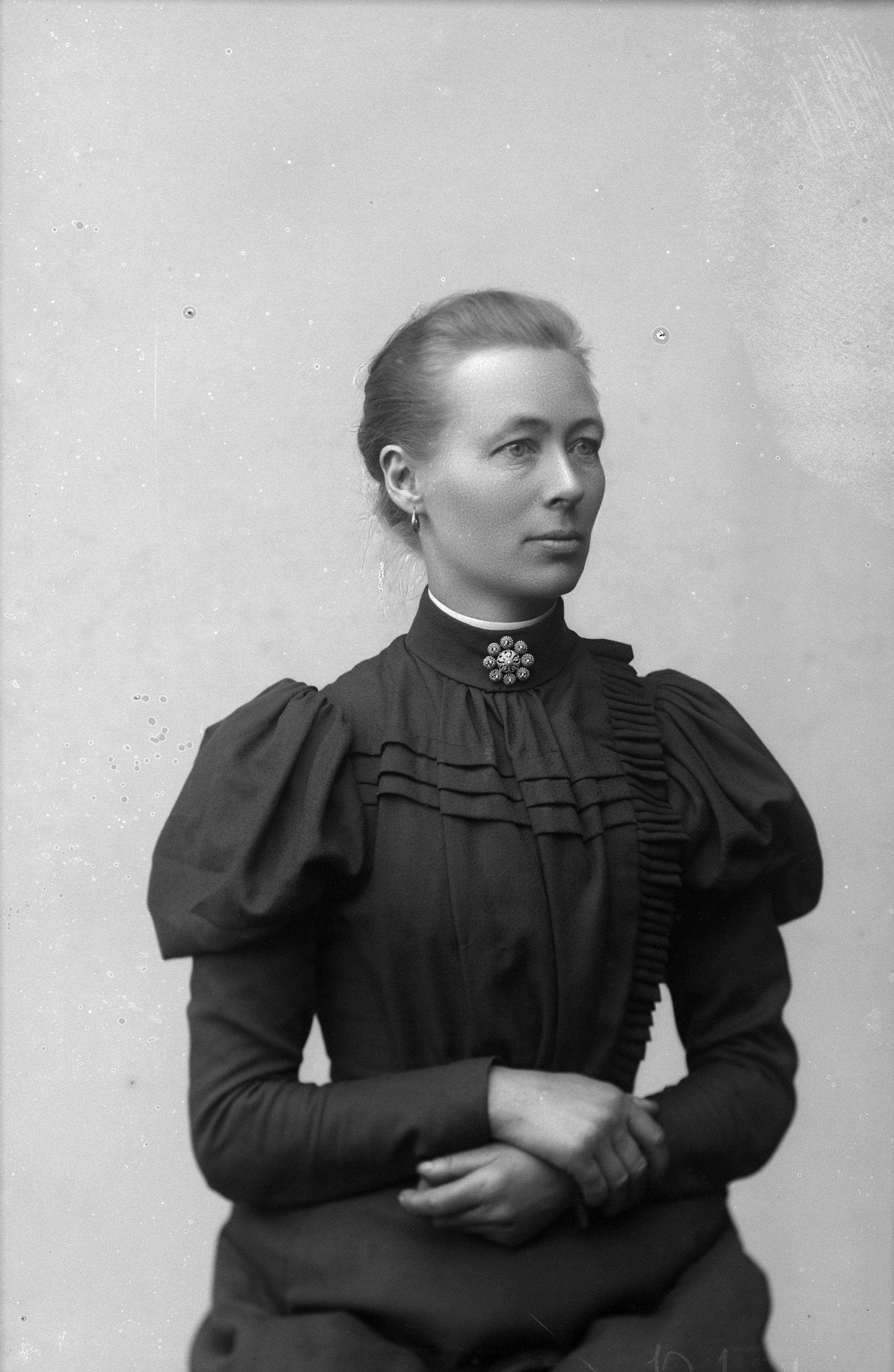 Beskrivning: Porträtt i halvfigur av Johanna Sjöström.