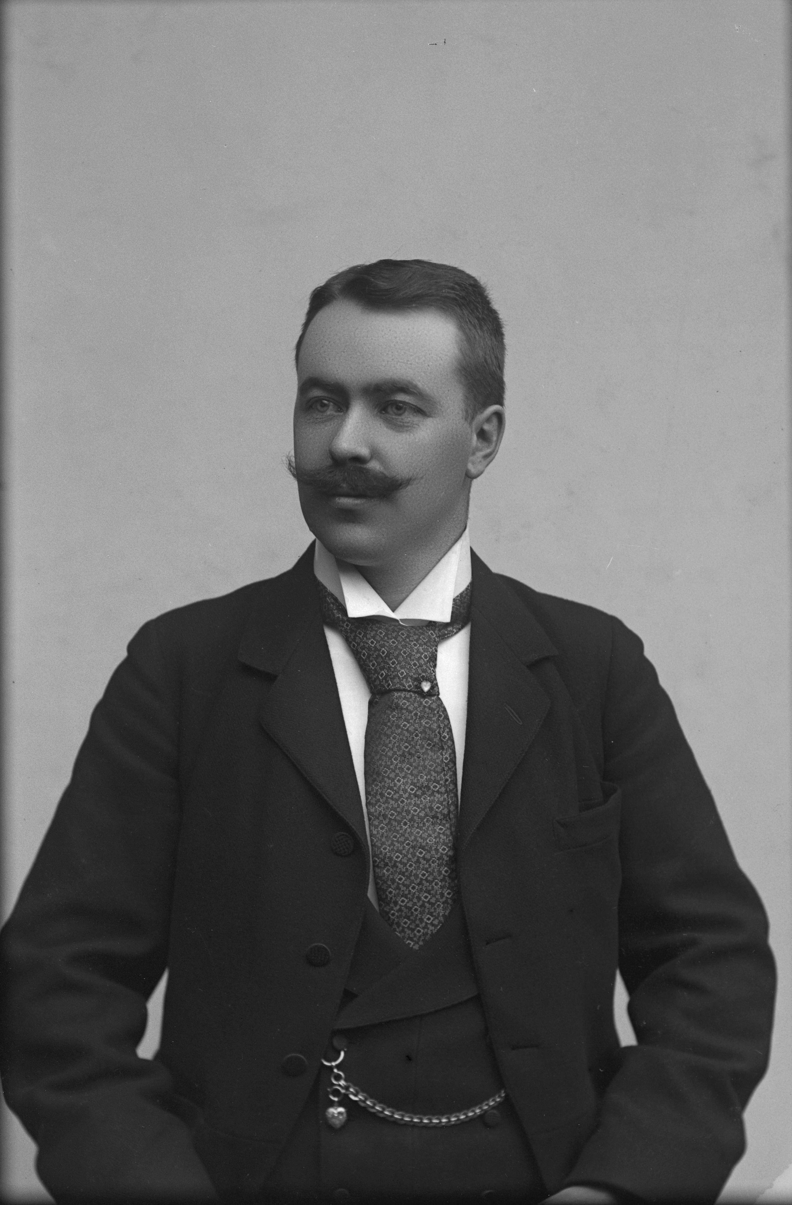 Beskrivning: Porträtt i halvfigur av postexpeditör Carl Lagrelius.