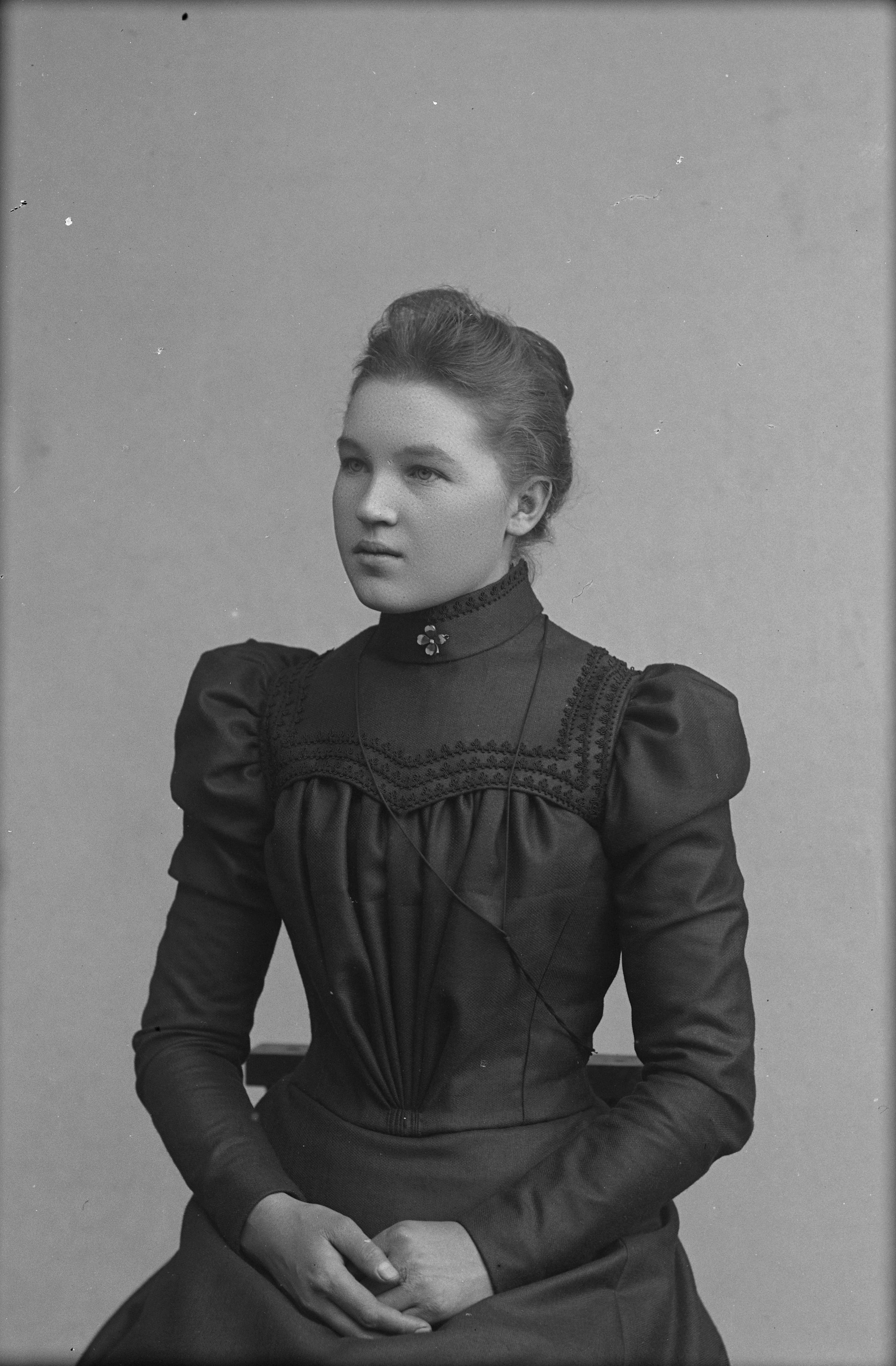 Beskrivning: Porträtt i halvfigur av Mathilda Gustafsson.