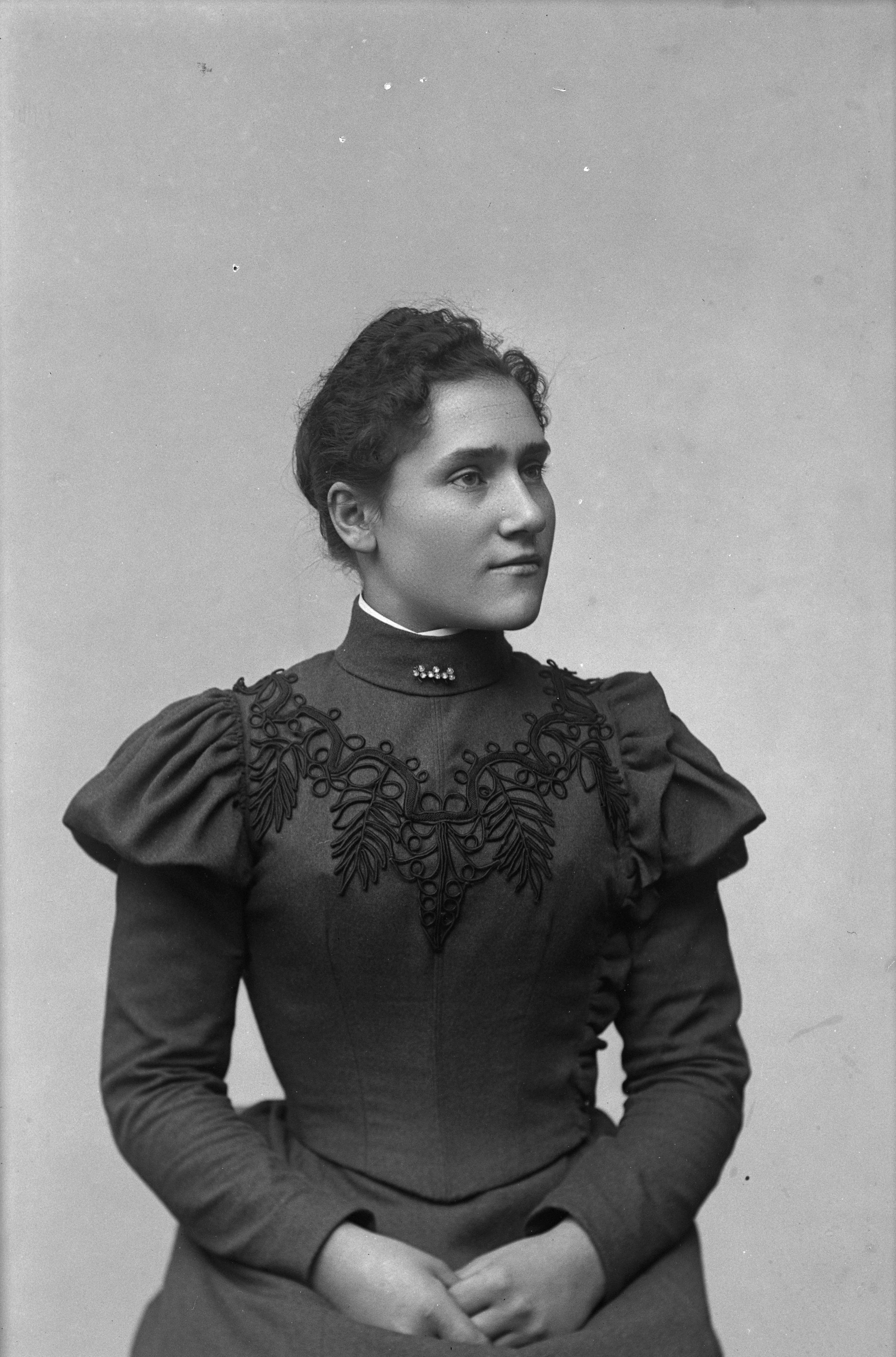 Beskrivning: Porträtt i halvfigur av Matilda Olsson.