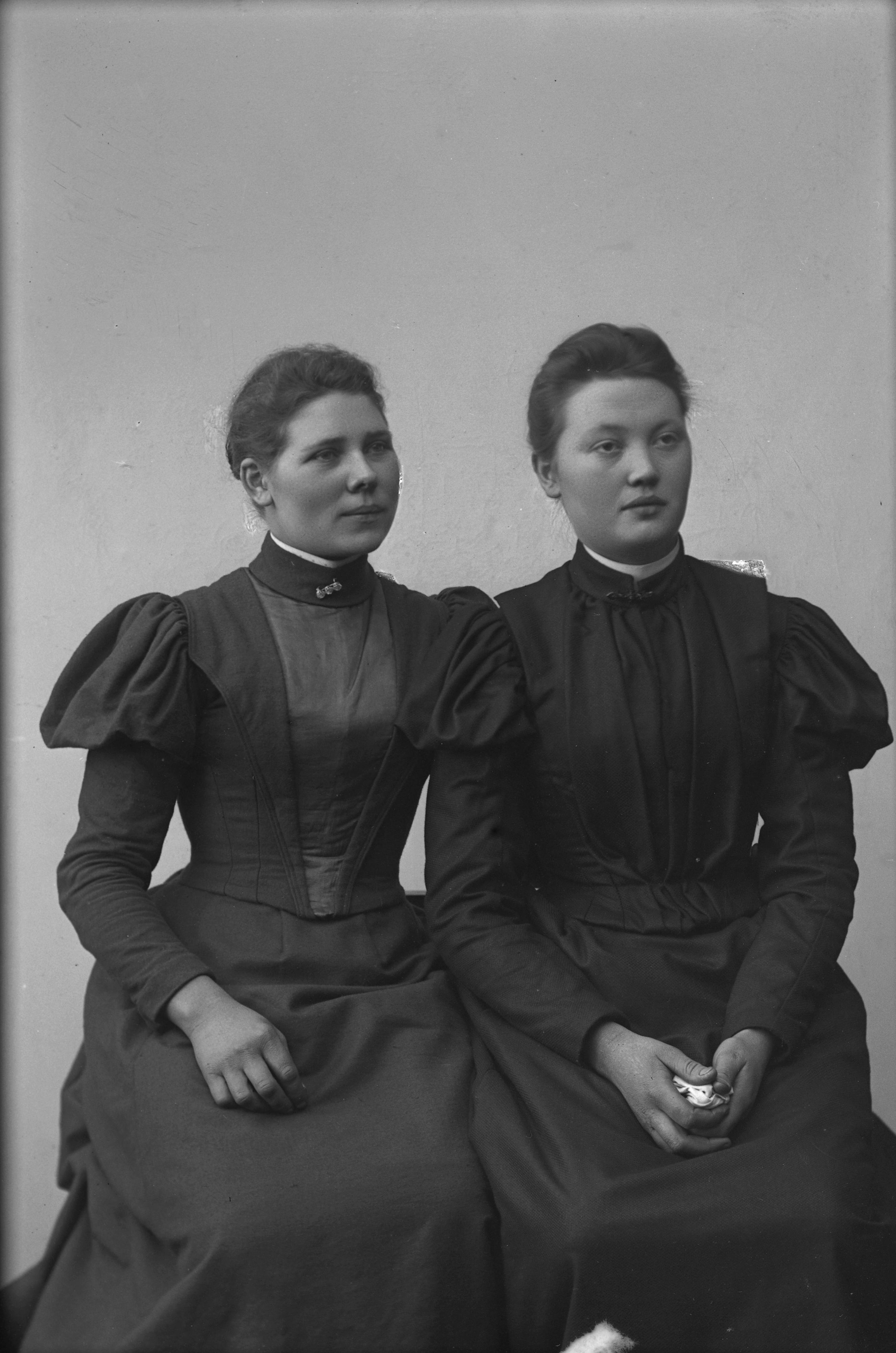 Beskrivning: Porträtt i helfigur av Anna Lundström med okänd kvinna.