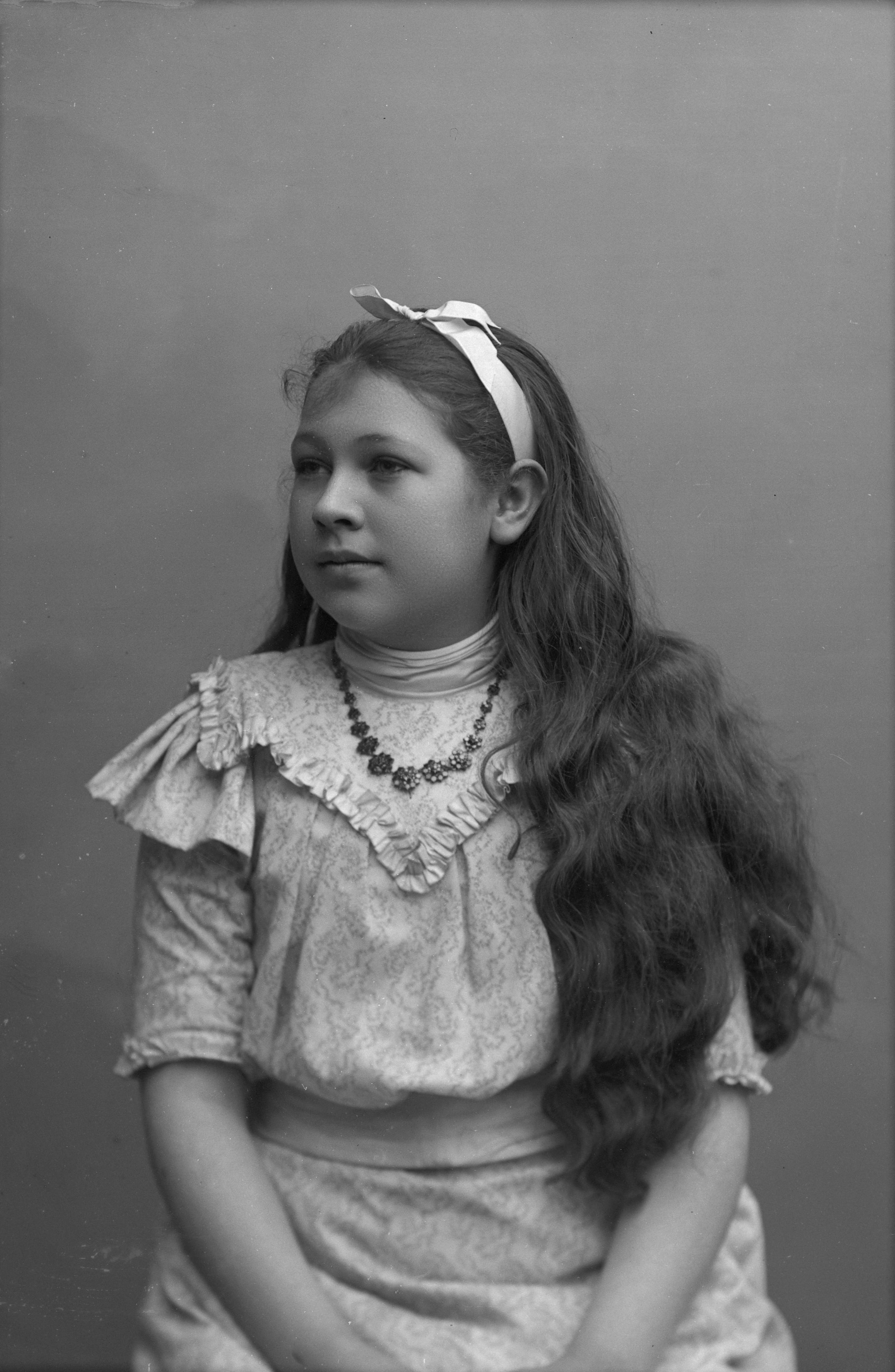 Porträtt i halvfigur av Frida Elisabet Klein, bärande hårband.