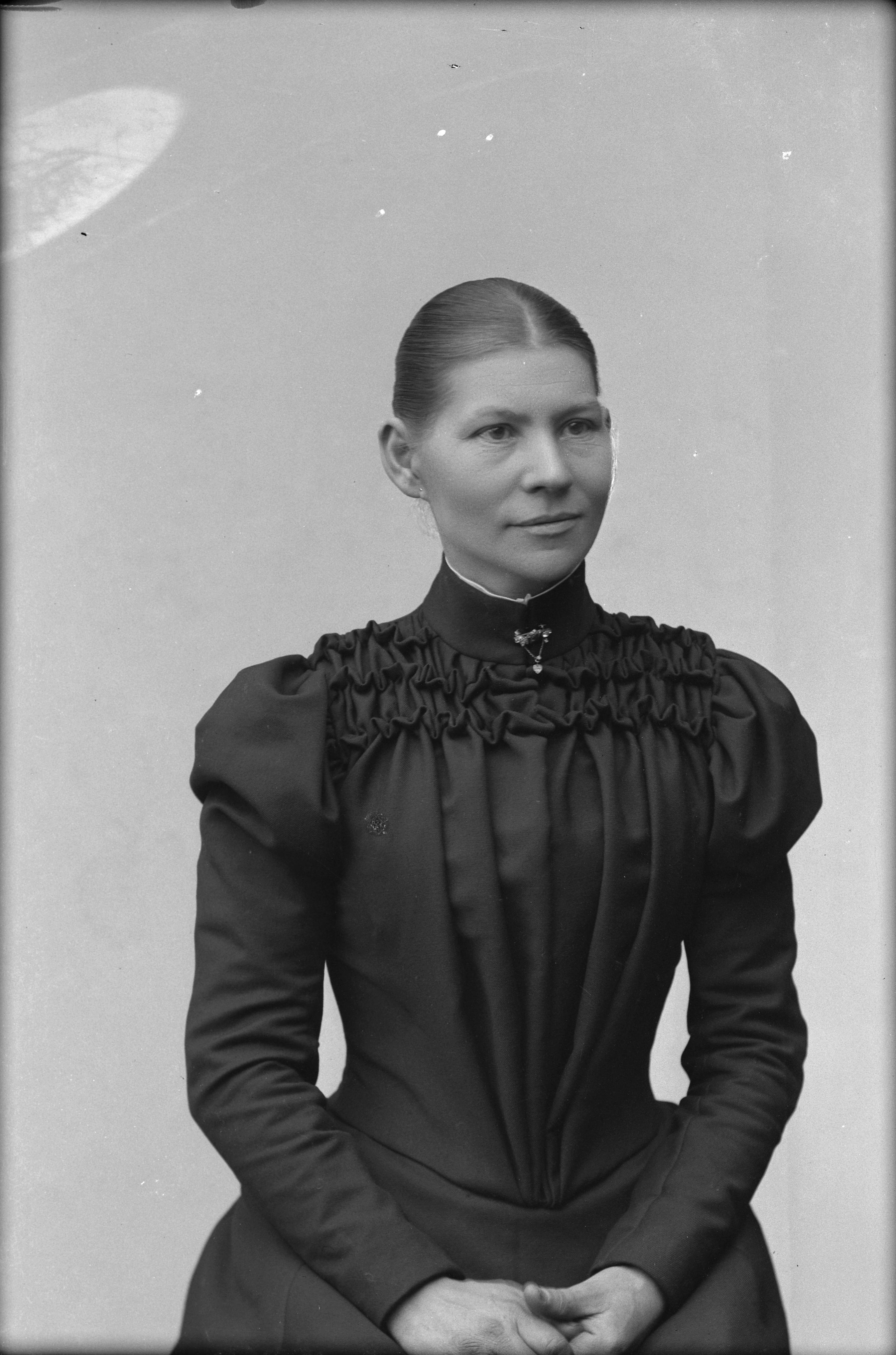 Beskrivning: Porträtt i halvfigur av Anna Jönsson.