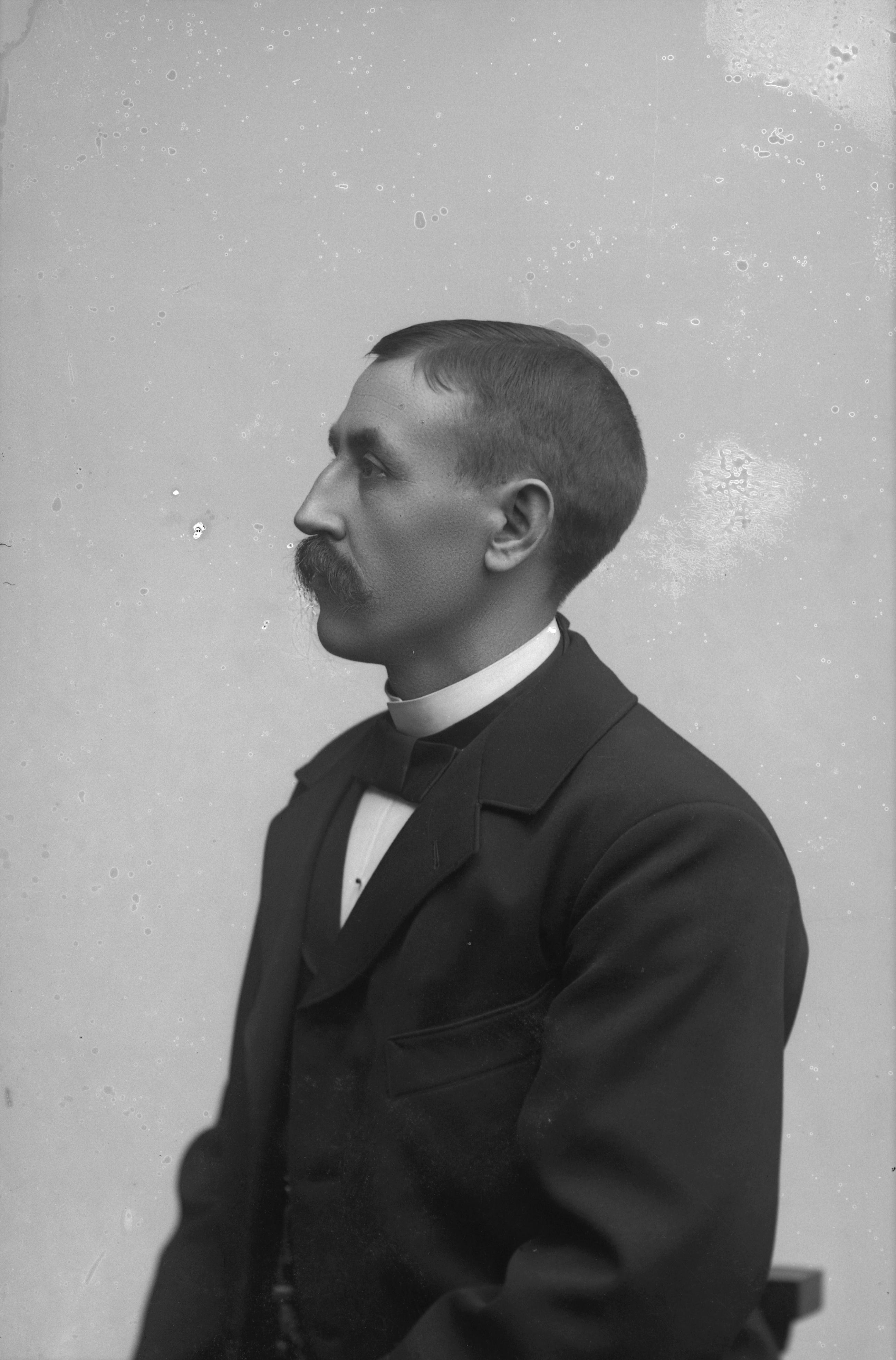Porträtt i halvfigur, profil, av Karl Jönsson.