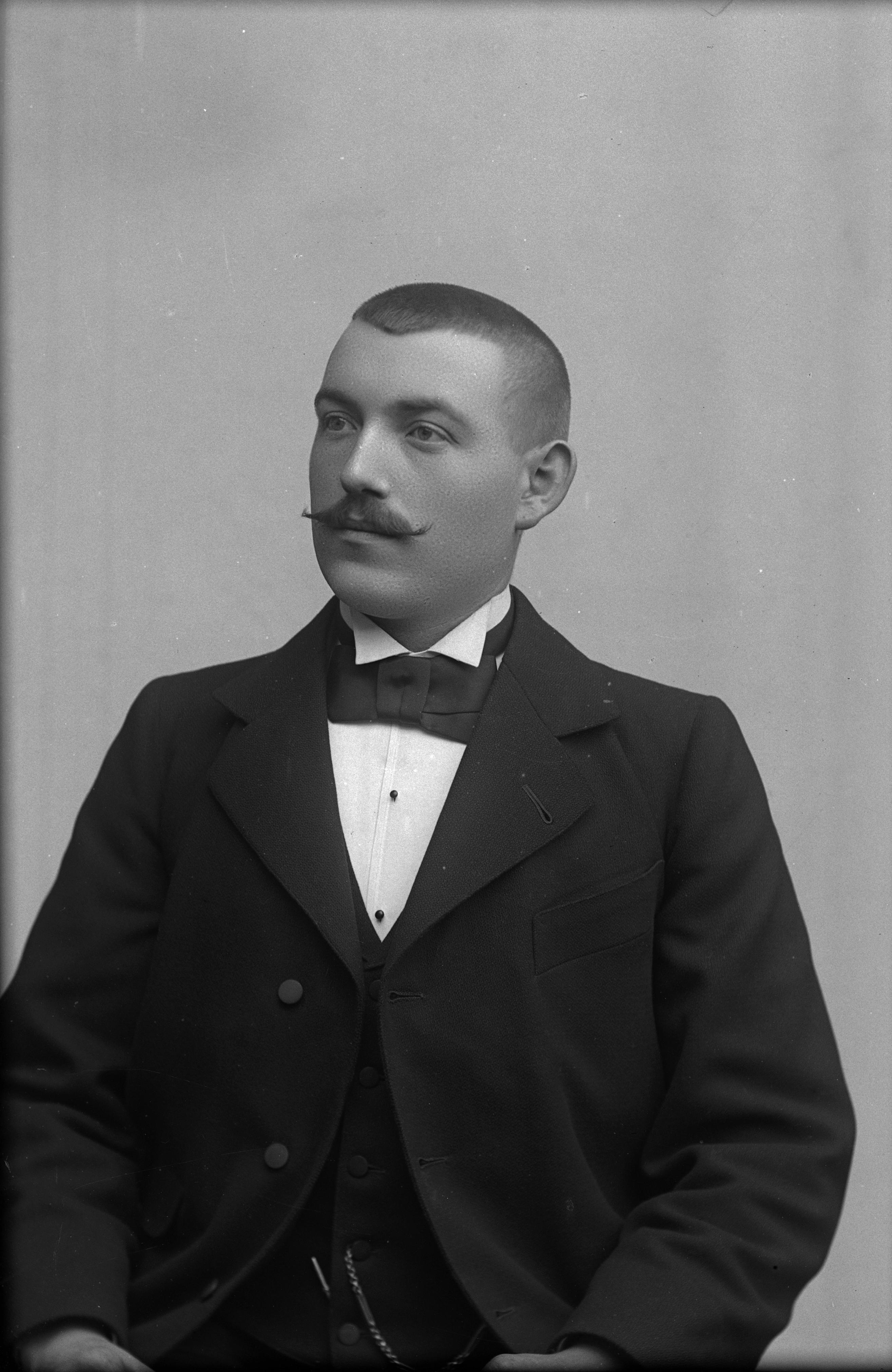 Beskrivning: Porträtt i halvfigur av August Andersson.