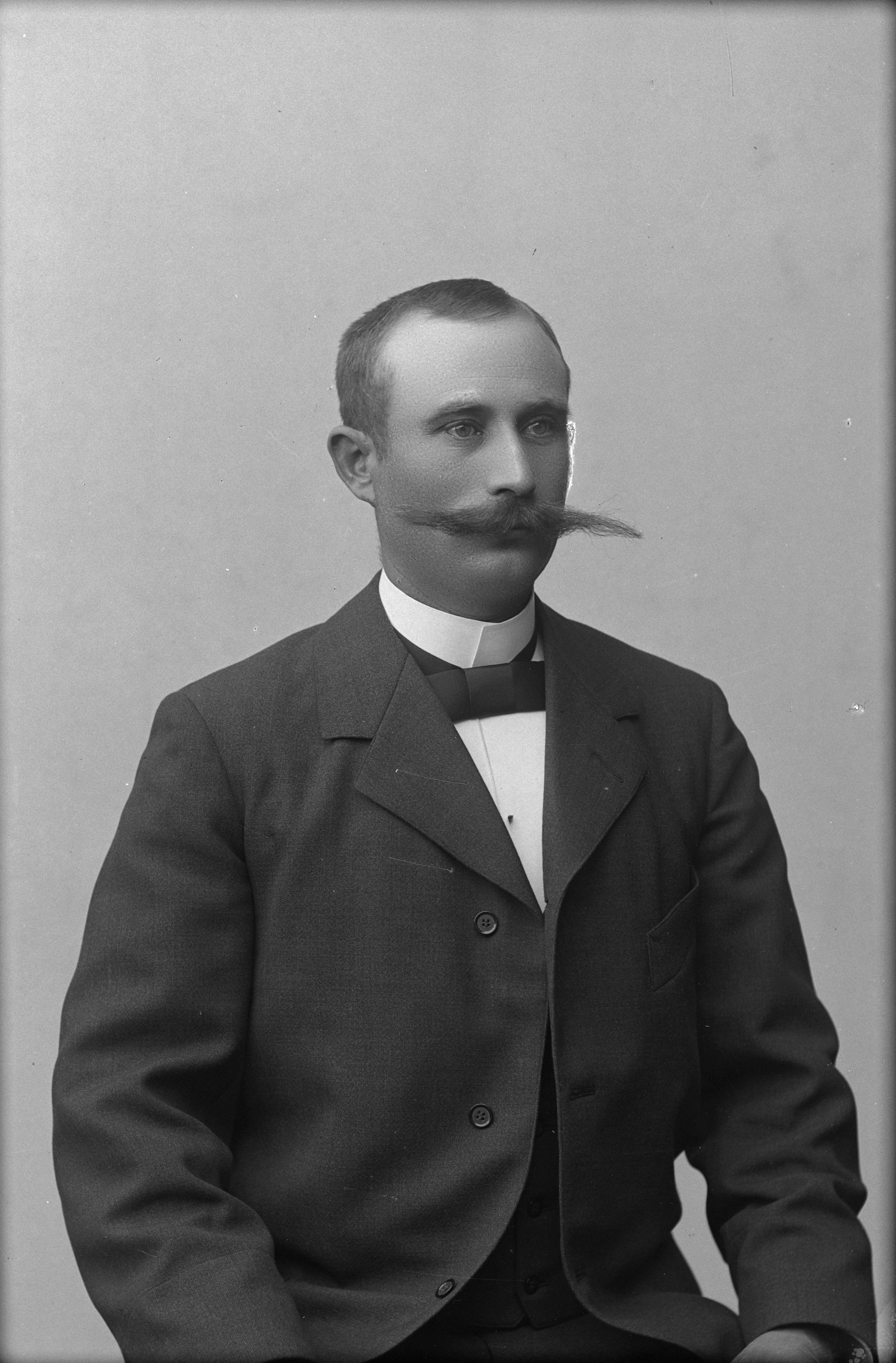 Beskrivning: Porträtt i halvfigur av sergeant S. Holmberg.