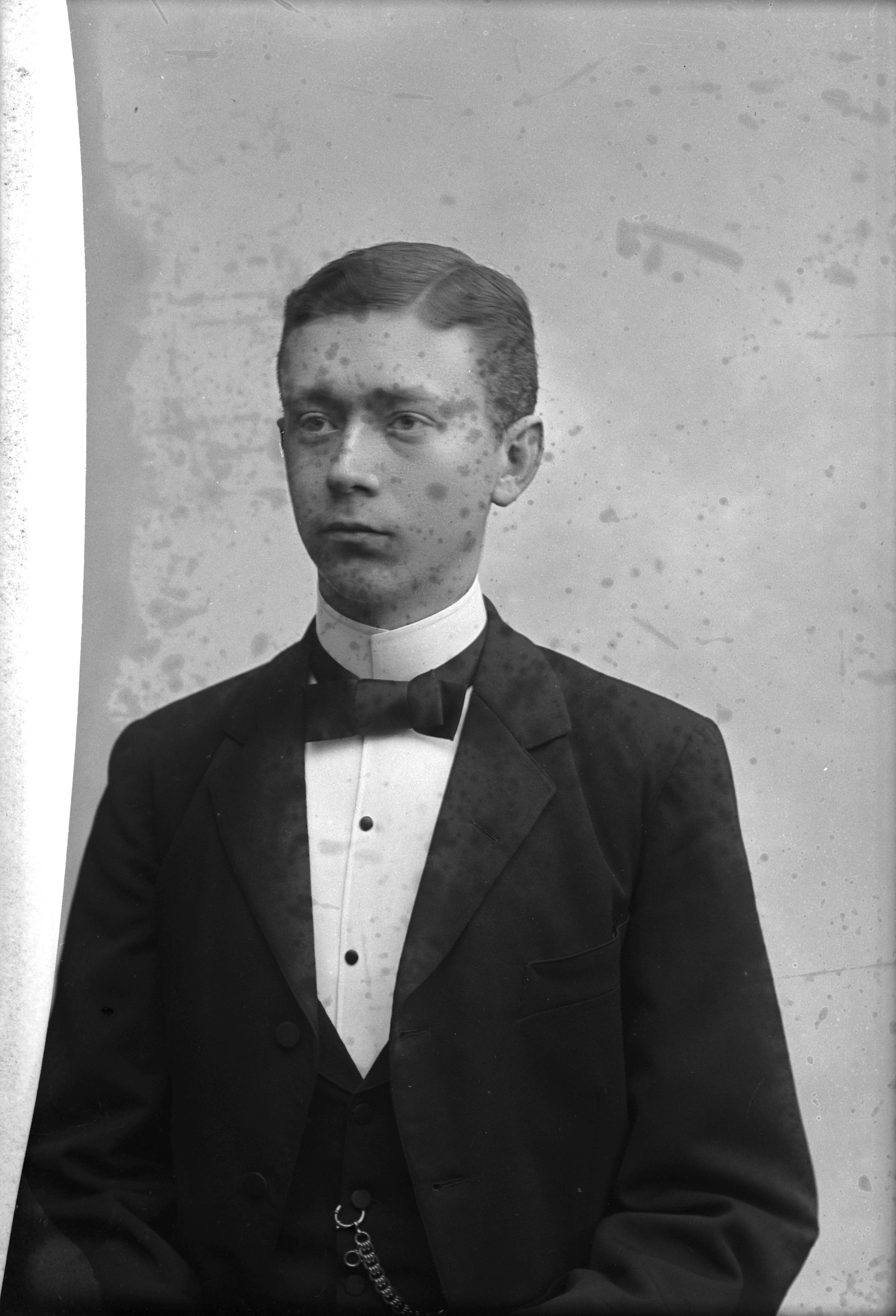 Beskrivning: Porträtt i halvfigur av bankman Alvar Ehrnberg.
