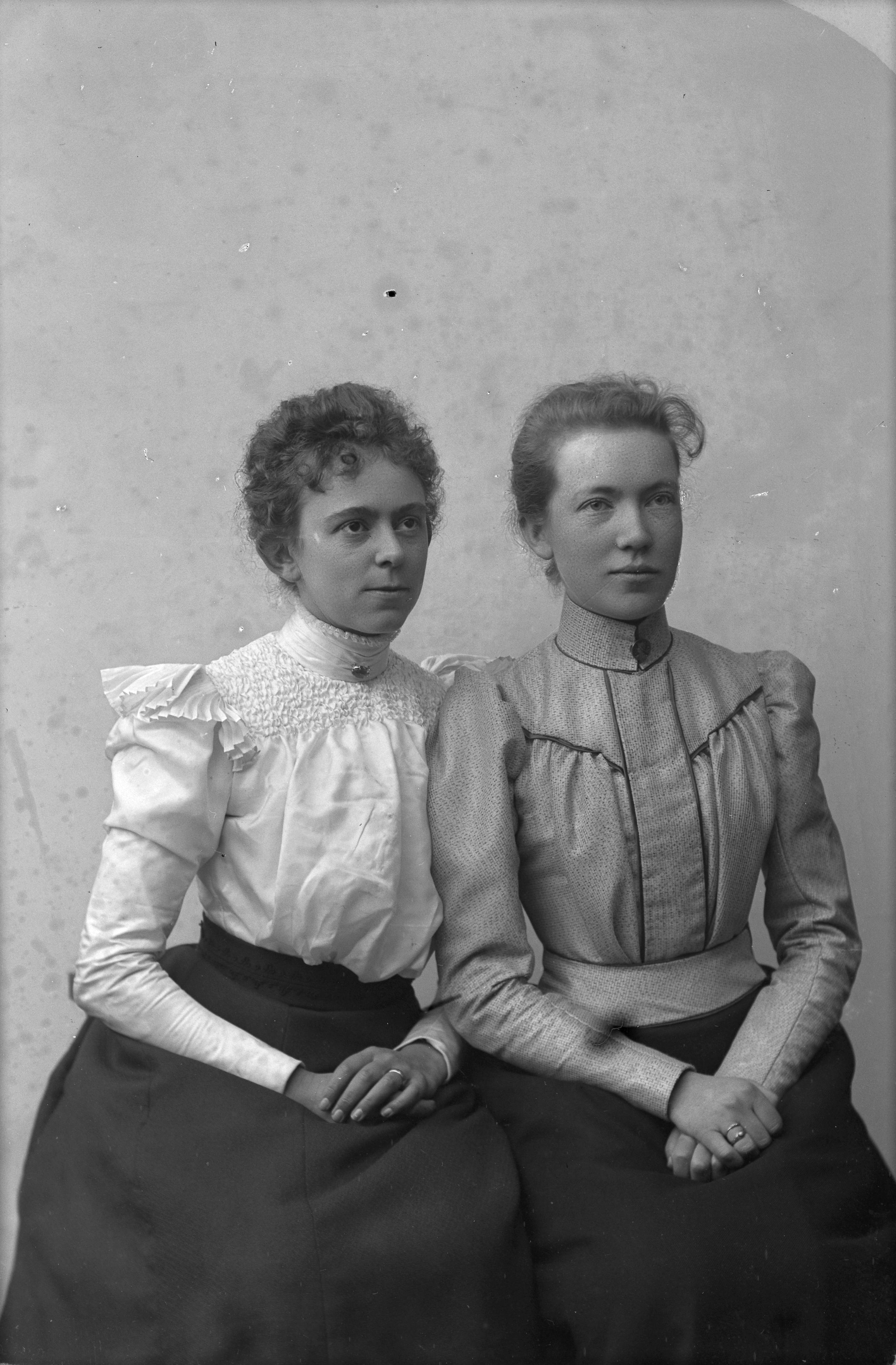 Beskrivning: Porträtt i halvfigur av fröken Bergh med okänd kvinna.