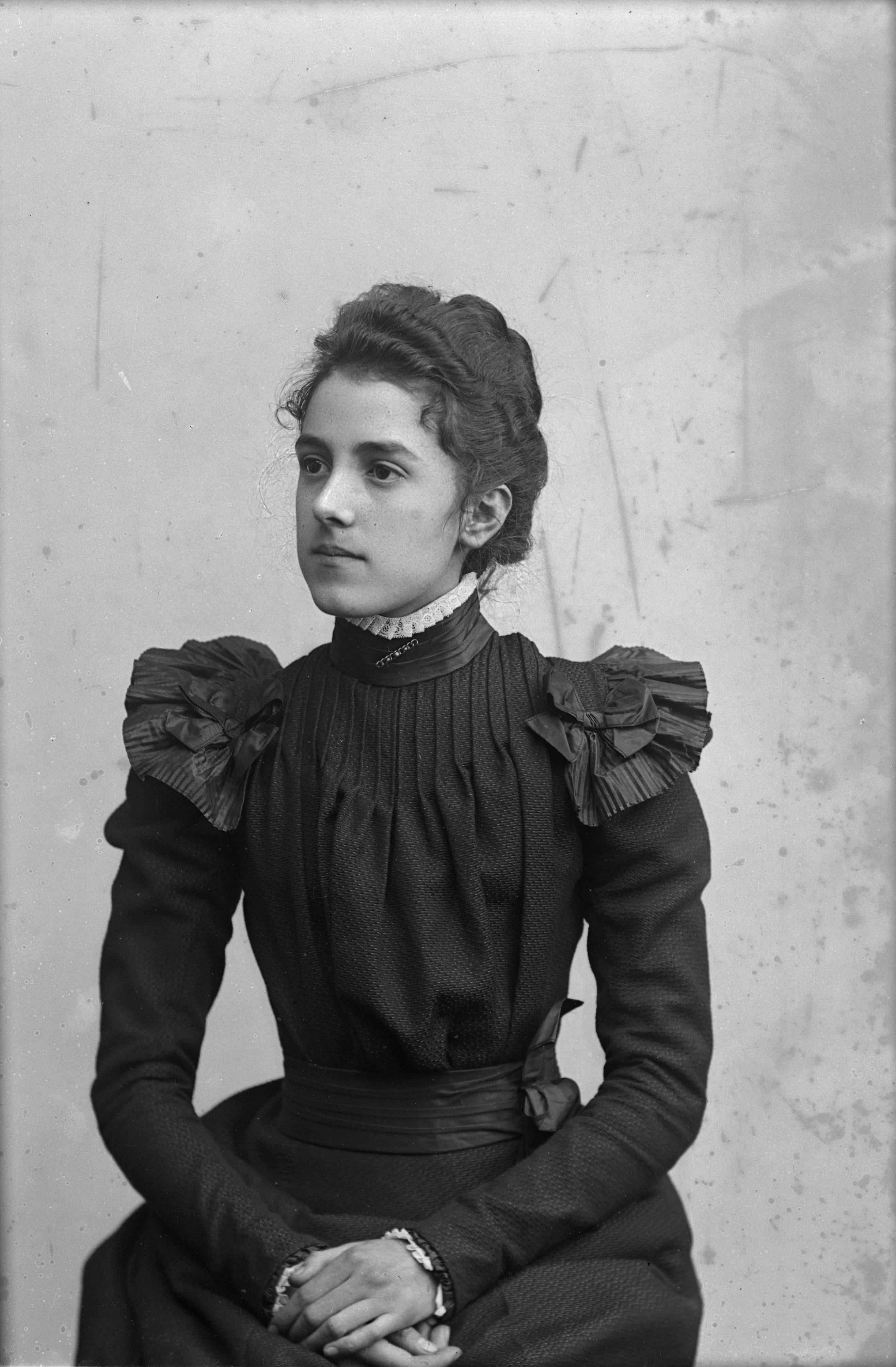 Beskrivning: Porträtt i halvfigur av fröken Vulff.