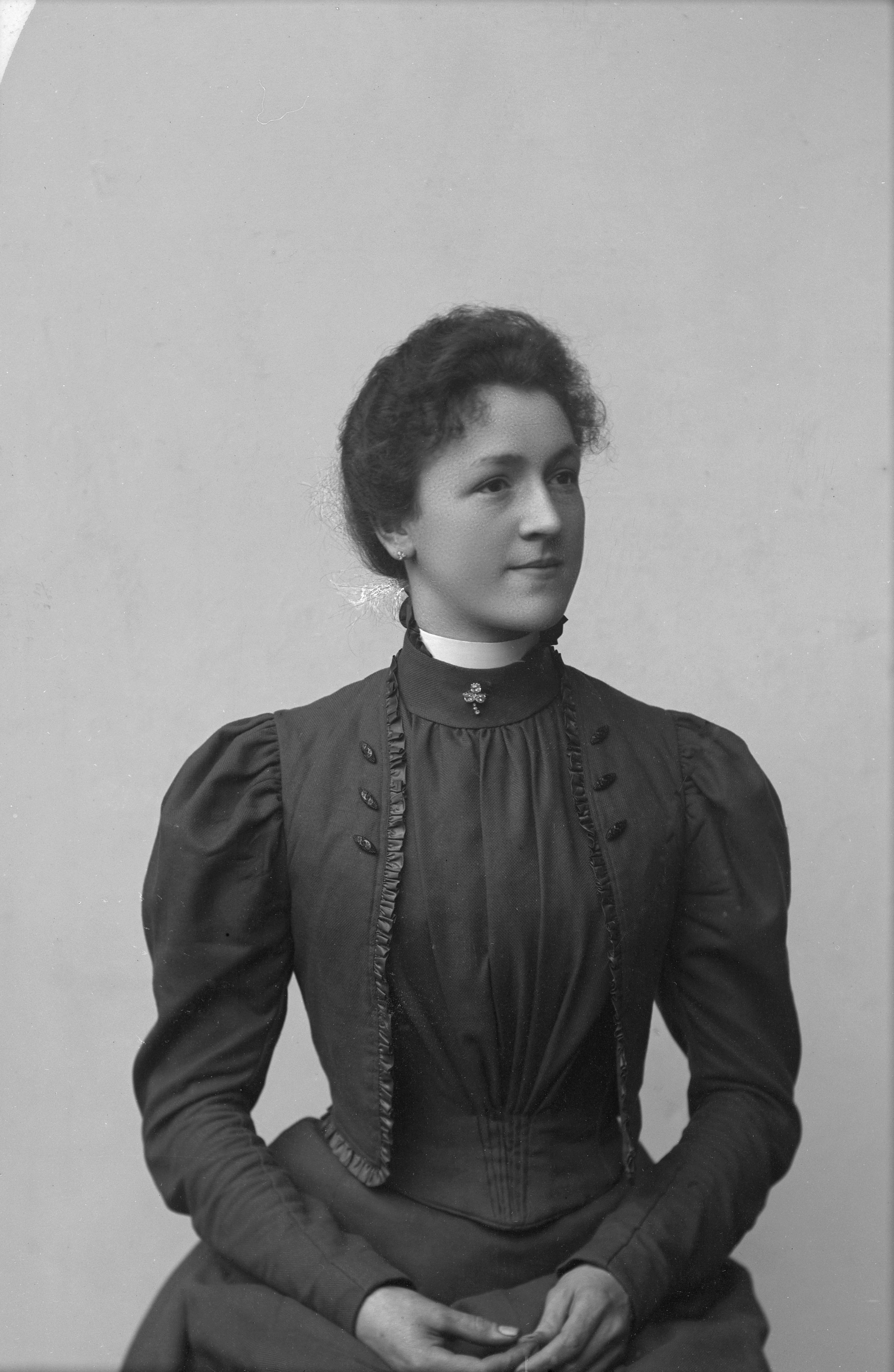 Beskrivning: Porträtt i halvfigur av Amanda Persson.