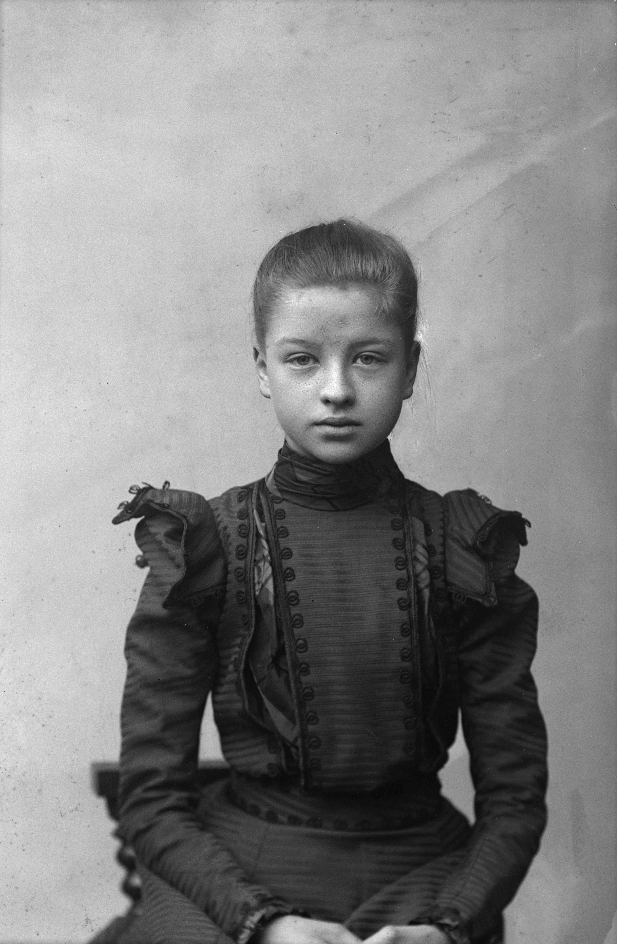 Beskrivning: Porträtt i halvfigur av Anna Holmgren.