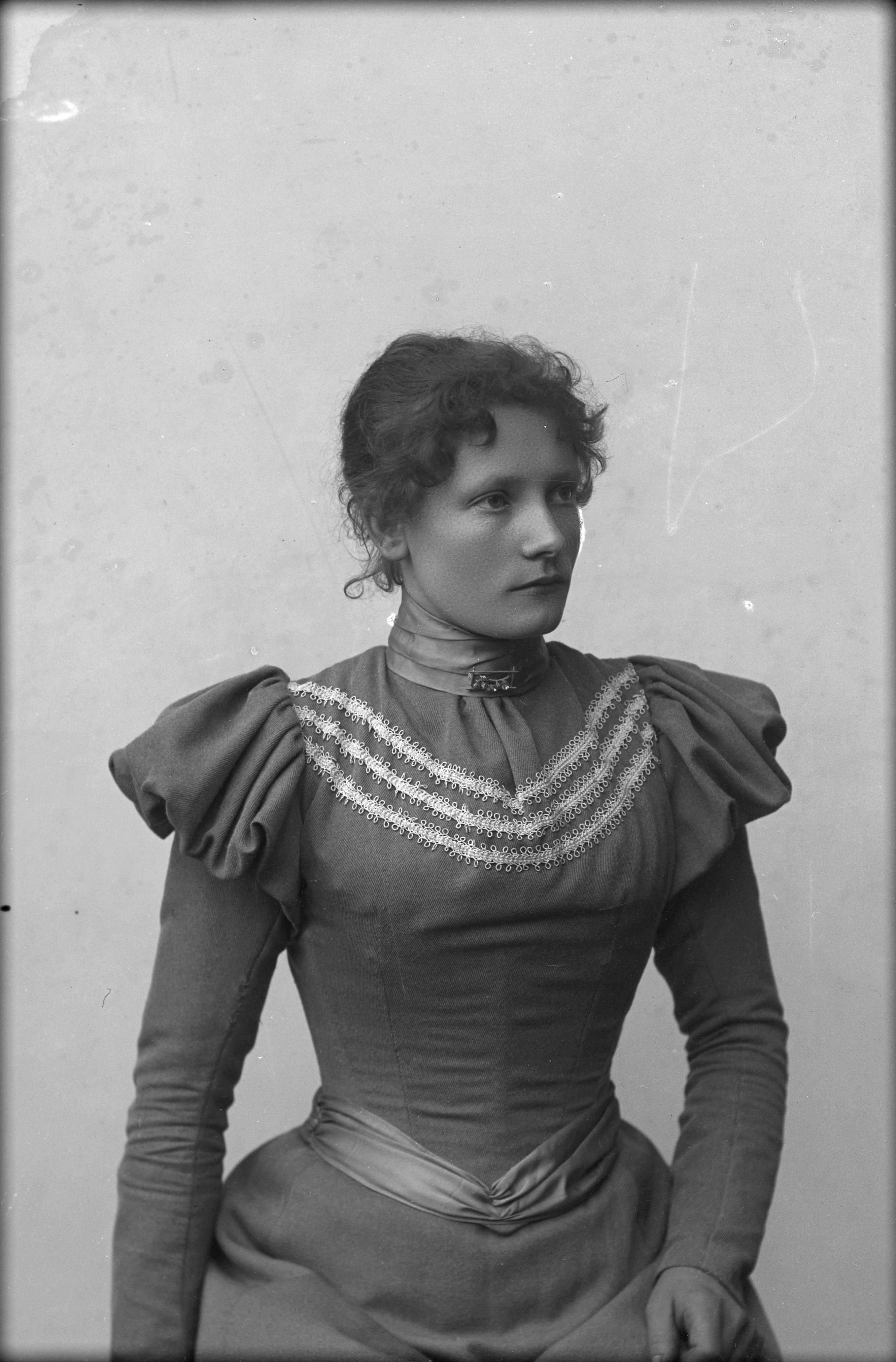 Beskrivning: Porträtt i halvfigur av Emilia Andersson.