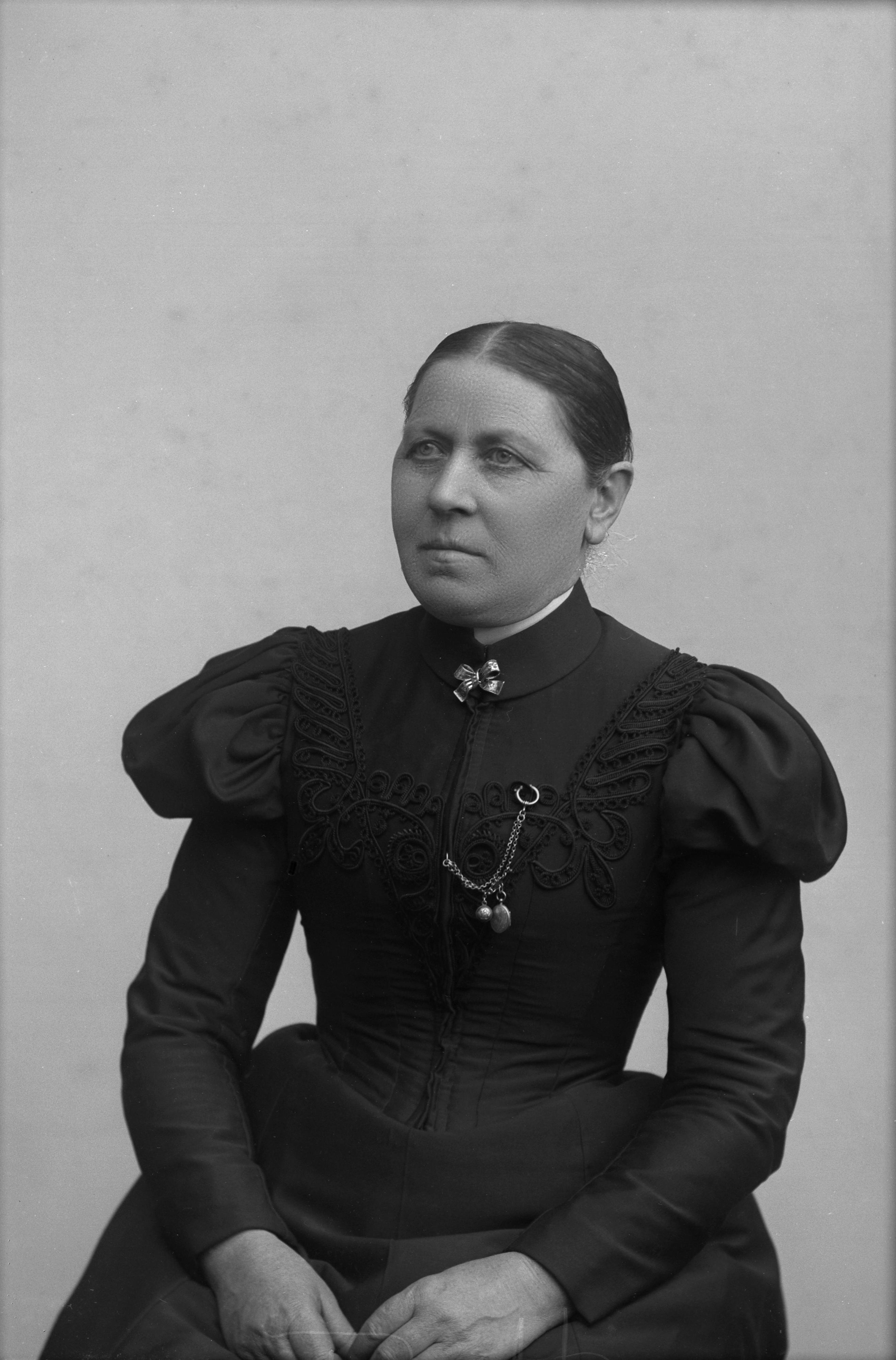 Beskrivning: Porträtt i halvfigur av Johanna Mattsson.